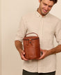 Hækletaske hækletui strikketaske opbevaring dame herre brun læder