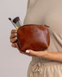Den omsluttende accent-lynlås understreger her den klassisk-elegante fremtoning af bøffellæderet og fremhæver dermed den stilfulde touch af "Leo" uden at virke påtrængende. Indersiden af Beauty Bag er imidlertid lavet af vandtæt polycotton, så selv en lækkende concealer ikke længere kan forårsage en katastrofe. Desuden er den rummelig og overskuelig, så du har rigelig plads til dine vigtigste skønhedsværktøjer, til dine hygiejneartikler – eller til chokoladebaren mod den næste sultkrise.