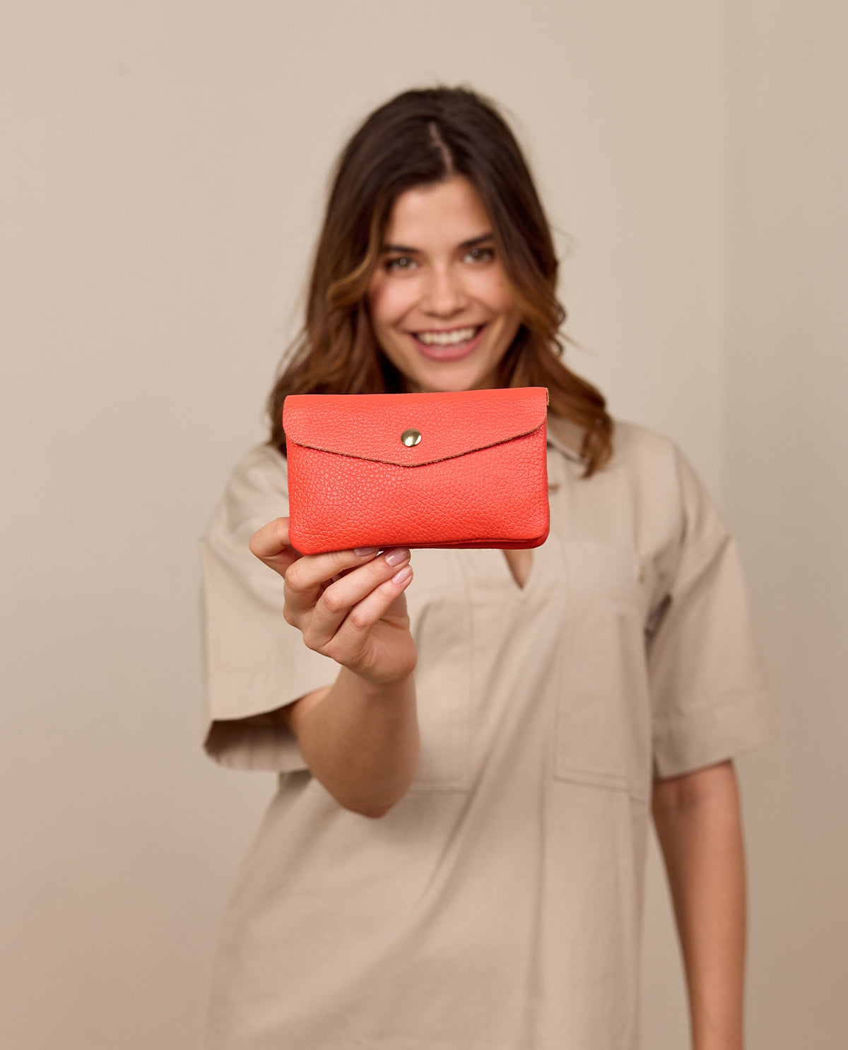 "Anela" opbevaringstasken er mere end blot et tilbehør – den er den perfekte kombination af stilfuldt design og praktisk funktion. Dens elegante omslagsklap med magnetisk lukning sikrer, at dine vigtigste genstande er sikkert opbevaret og samtidig let tilgængelige. Fremstillet af højkvalitetslæder, legemliggør den italiensk håndværkskunst og imponerer med sit ædle udseende og holdbarhed. Derudover kan du få "Anela" forfinet med en personlig gravering – så bliver et højkvalitetstilbehør til et helt særligt stykke. Denne taske integrerer sig problemfrit i din hverdag og giver dit look et raffineret touch.