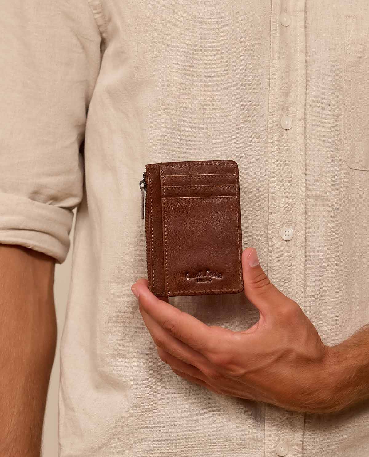"Arlan" pungen er mere end bare et praktisk tilbehør – det er en stilfuld følgesvend, der organiserer dit liv. Lavet af høj kvalitet brunt læder, imponerer den med sin enkle elegance og fremragende håndværk. Den ædle brune farve og den fine tekstur af læderet gør den til en tidløs klassiker, der efterlader et varigt indtryk både i lommen og i hånden.