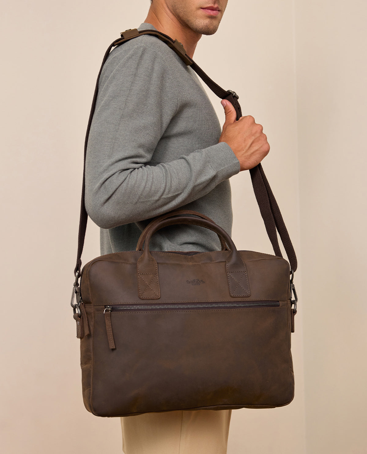 "Elijah" er den perfekte kombination af stil og funktionalitet til det moderne business-look. Denne dokumentmappe er fremstillet af højkvalitets bøffellæder og har en rustik elegance, der garanteret vil tiltrække sig opmærksomhed. Den har plads nok til dine vigtige dokumenter, din bærbare computer i et separat laptoprum, tablet, mapper og meget mere. Takket være den længdejusterbare og aftagelige skulderrem kan du bære tasken komfortabelt som skuldertaske eller bruge den klassisk i hånden – to bæremuligheder takket være den ekstra bærerem. Tasken er desuden udstyret med en praktisk frontlomme med lynlås, der giver ekstra opbevaringsplads til dine vigtige genstande som smartphone eller tegnebog. For at give tasken et personligt præg er der også integreret et graveret patch.