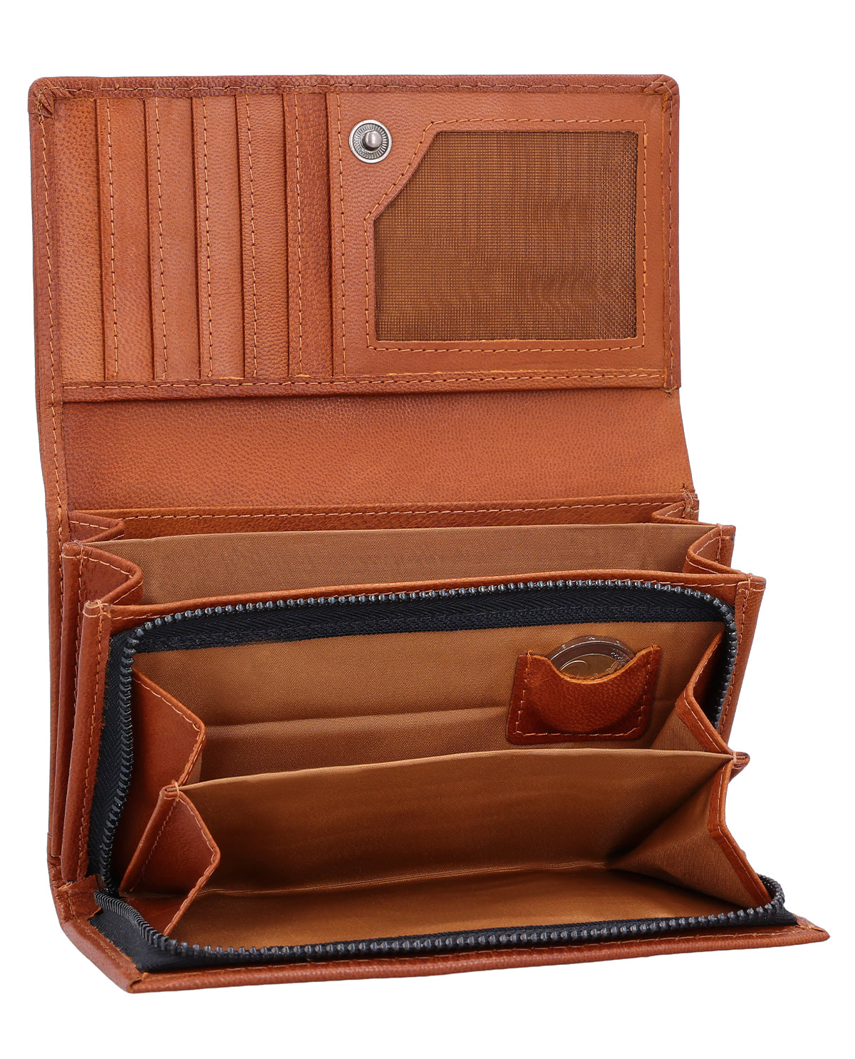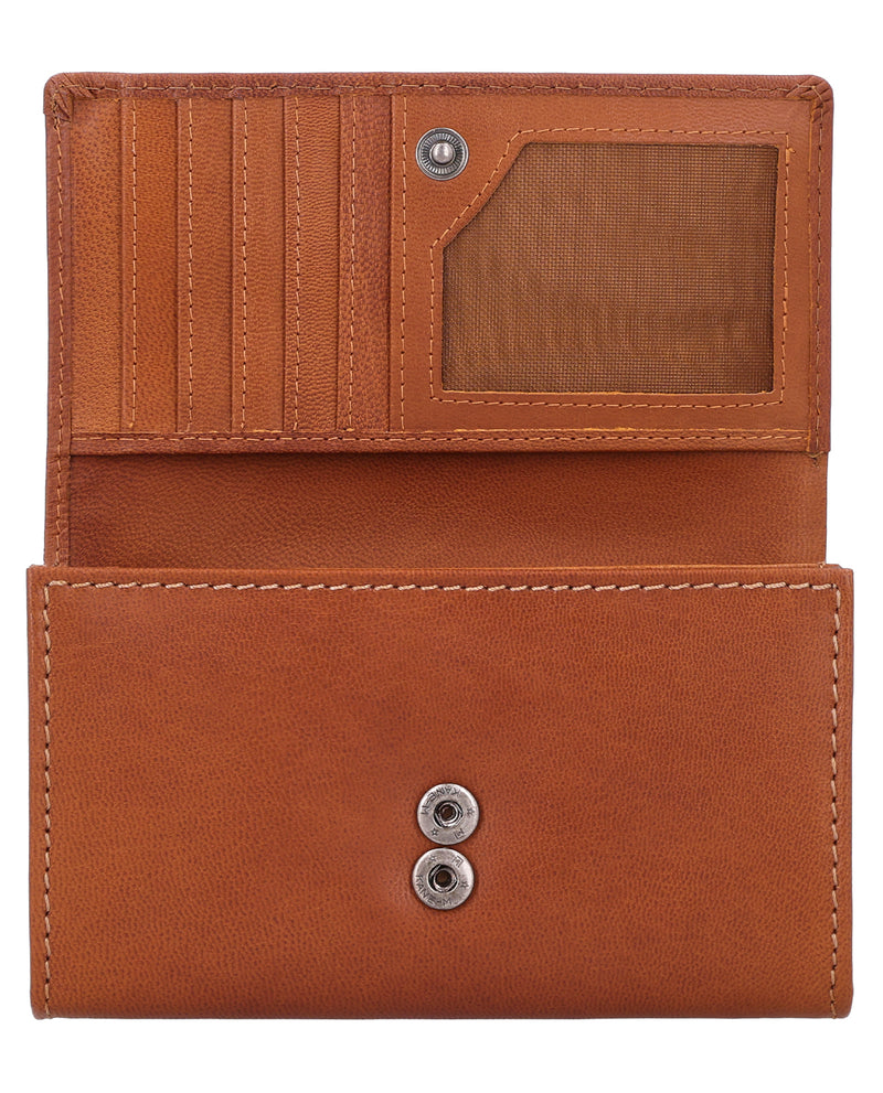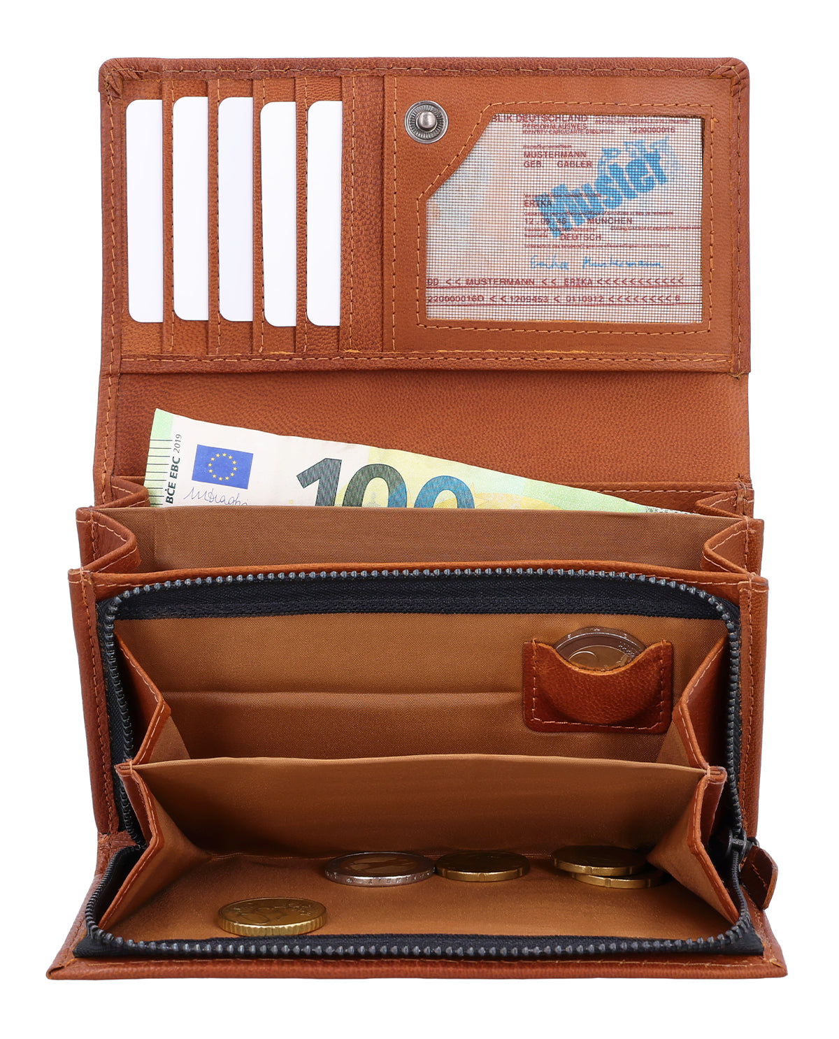 Med vores pung "Gemma" har du alt med: Kort, sedler, småpenge og billetter har deres faste plads. De to småpengelommer kan lukkes med lynlås . Derudover er der et ekstra mønstermonter til en enkelt mønt – ideelt, hvis du hurtigt vil have en passende mønt ved hånden. I "Gemma" er der plads til mindst fem kort, og vi tilbyder dig også et kortmonter med gennemsigtigt vindue til f.eks. dit ID-kort. Dine sedler er godt opbevaret i to separate rum. Takket være integreret RFID-beskyttelse er dine kort desuden pålideligt beskyttet mod uønsket aflæsning. Resten af tegnebogen holdes sammen af en trykknap. Så du kan hurtigt få fat i dine penge, men de er alligevel beskyttet mod at falde ud. Tegnebogen er lavet af robust oksekind og er dermed en sand hverdagshelt: perfekt til dem, der køber meget, og dem, der gerne vil blive det!