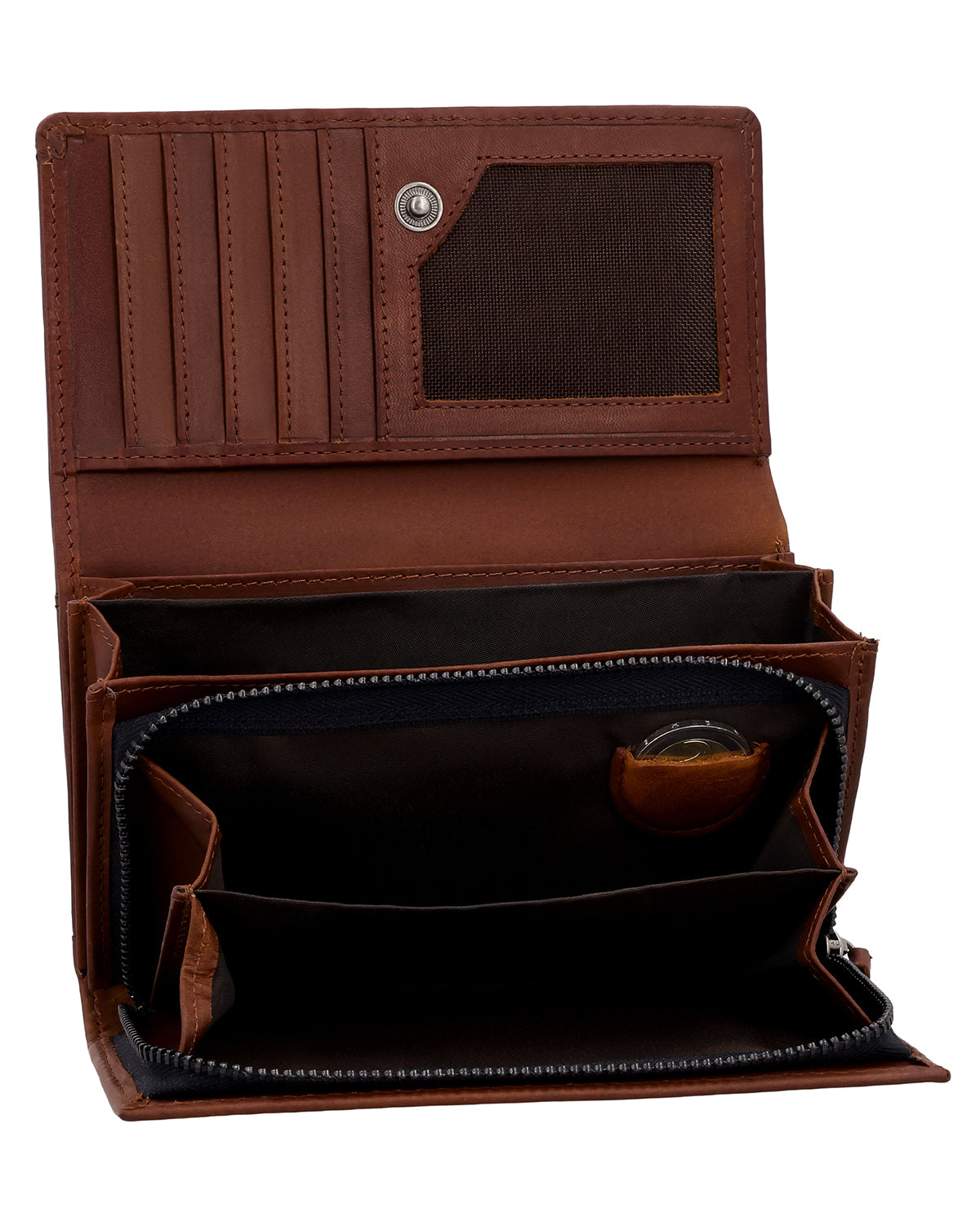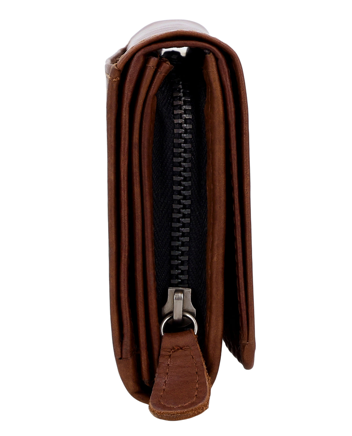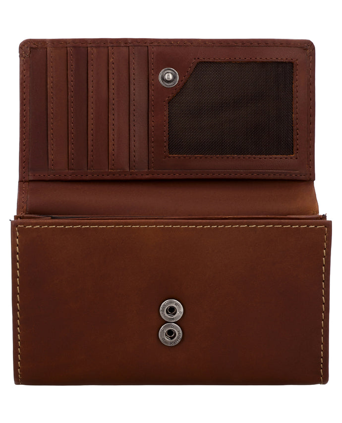 Med vores pung "Gemma" har du alt med: Kort, sedler, småpenge og billetter har deres faste plads. De to småpengelommer kan lukkes med lynlås. Derudover er der et ekstra møntrum til en enkelt mønt – perfekt, hvis du hurtigt vil have en passende mønt ved hånden. I "Gemma" er der plads til mindst fem kort, og vi tilbyder dig også et kortrum med gennemsigtigt vindue til f.eks. dit ID-kort. Dine sedler er godt opbevaret i to separate rum. Takket være integreret RFID-beskyttelse er dine kort desuden pålideligt beskyttet mod uønsket aflæsning. Resten af tegnebogen holdes sammen af en trykknap. Så kan du hurtigt få fat i dine penge, men de er stadig beskyttet mod at falde ud. Tegnebogen er lavet af robust oksekind og er dermed en sand hverdagshelt: perfekt til dem, der køber meget, og dem, der gerne vil!