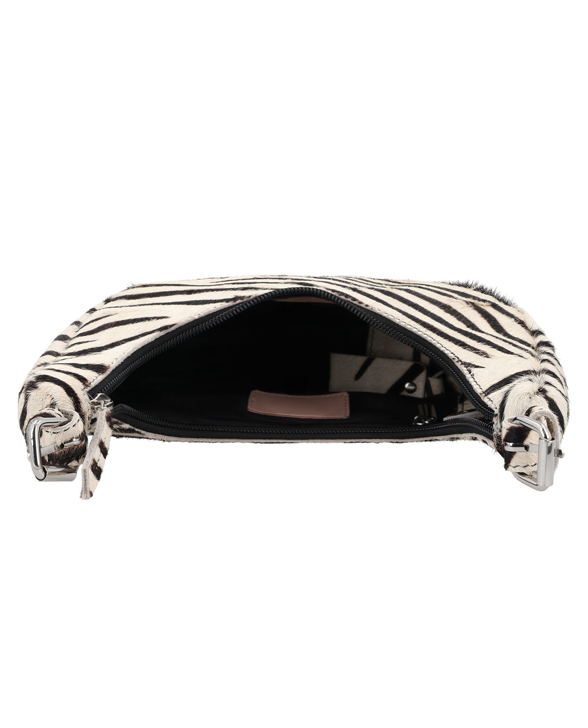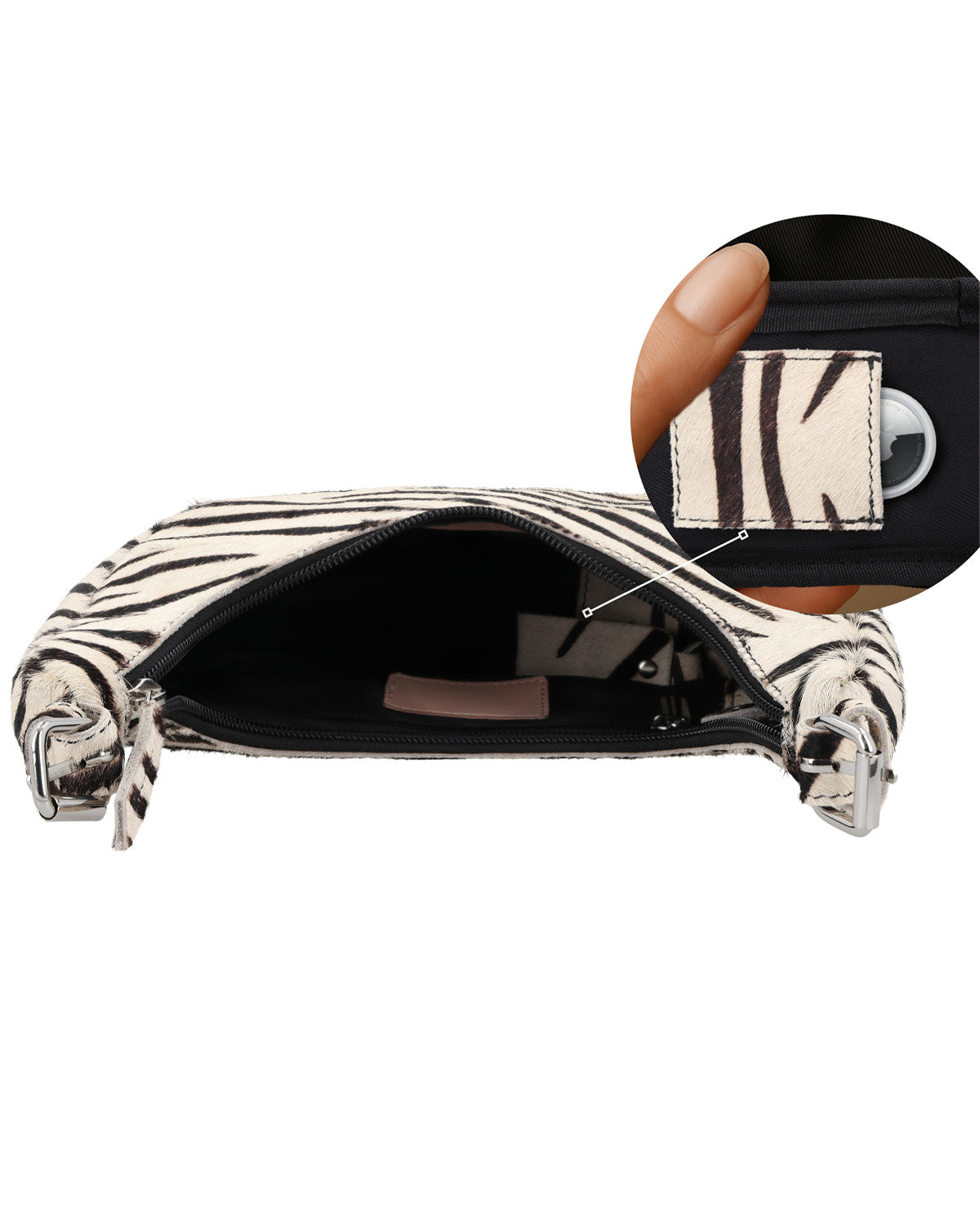 Håndtaske med AirTag-lomme, nøglering og zebra-mønster