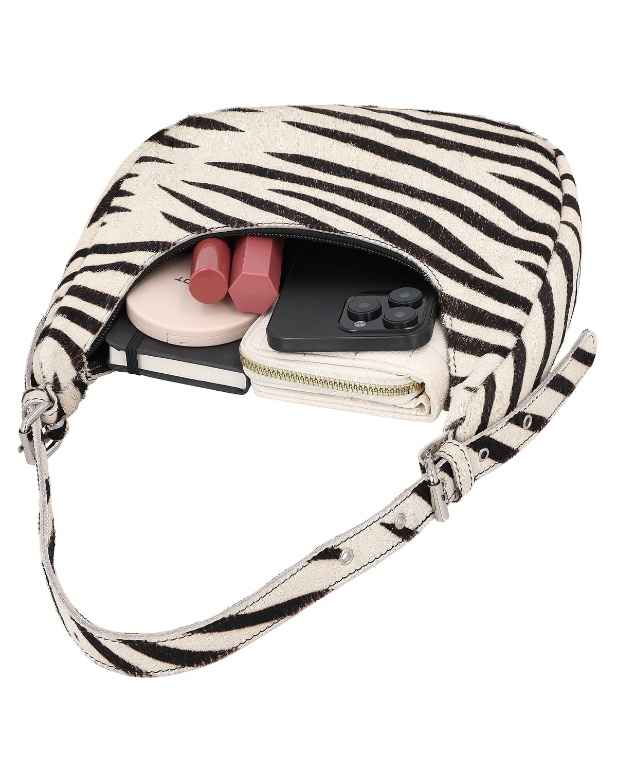 Den lille håndtaske "Heike" er en læderhåndtaske til kvinder, der elsker klare mønstre og gerne vil fremhæve deres stil. Det markante zebraprint giver denne lædertaske et udtryksfuldt, moderne look og skaber en bevidst kontrast til enkle outfits. På trods af sin kompakte størrelse virker "Heike" både markant og stilfuld – ideel til dage eller aftener, hvor du kun vil have det nødvendigste med. Denne læderhåndtaske kombinerer et moderigtigt statement med hverdagspraktiskhed og understreger dit individuelle look.