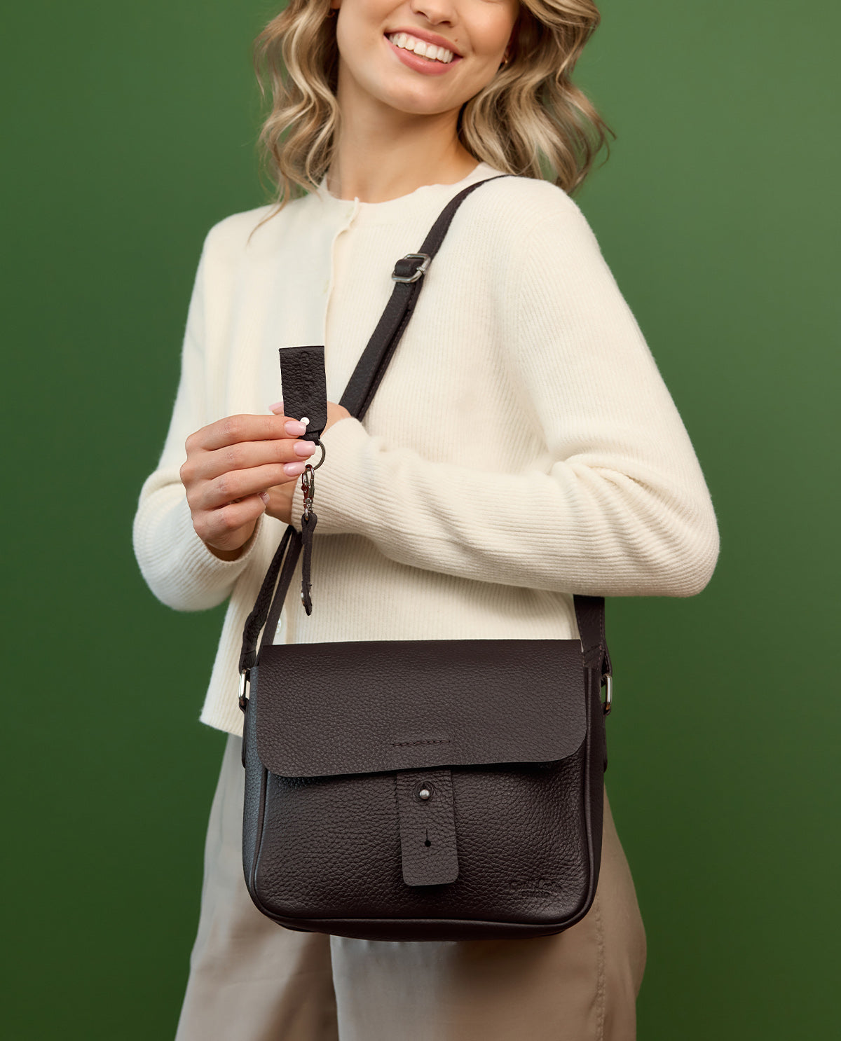 "Bonny" er den perfekte ledsager til din hverdag – kompakt, stilfuld og behagelig let. Det eksklusive læder giver tasken en elegant struktur, mens det enkle Easy-Closing-system med trykknap sikrer, at du hurtigt og sikkert kan opbevare dine vigtigste ting. Uanset om du er på bytur, på vej til arbejde eller skal mødes med venner – "Bonny" passer nemt ind i dit look og er altid pålidelig og charmerende.