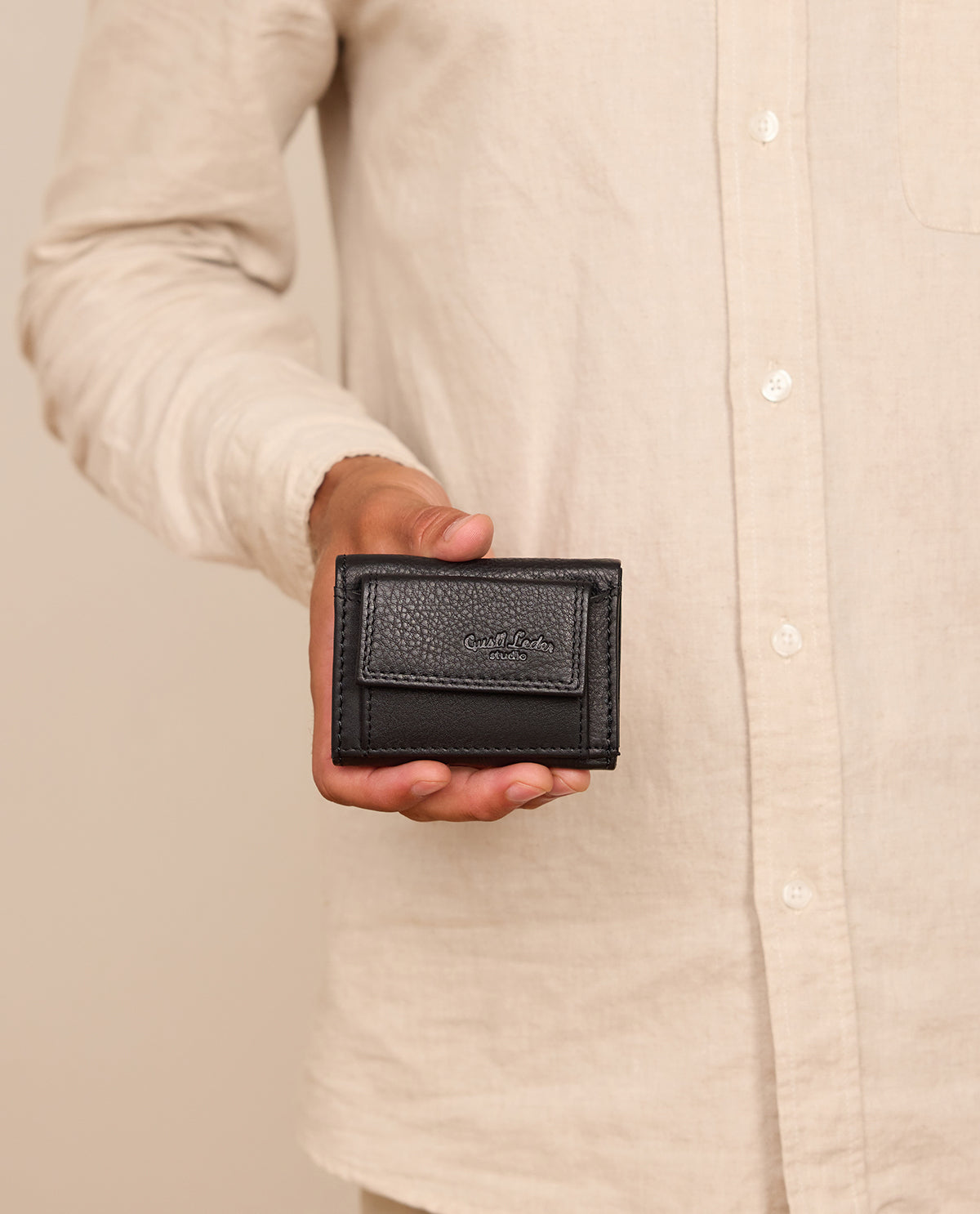 Højkvalitets sort læder: Pungen imponerer med sit ædle, slidstærke læder, der med tiden udvikler en smuk patina og dermed bliver stadig mere unik.