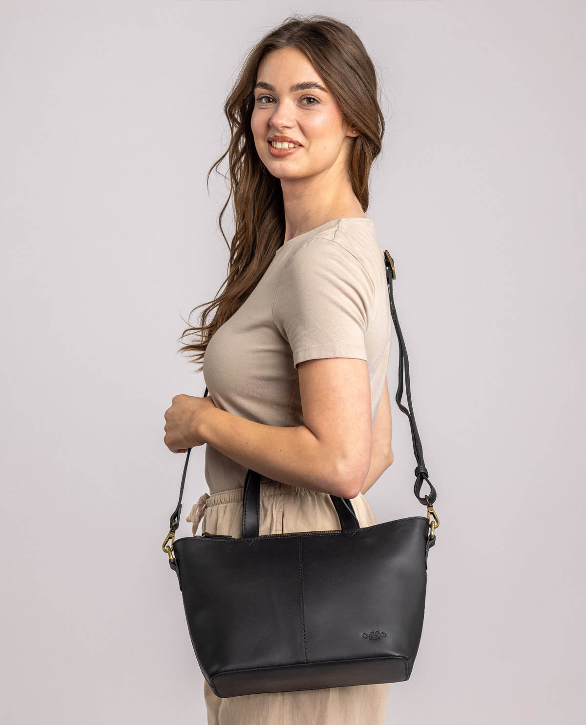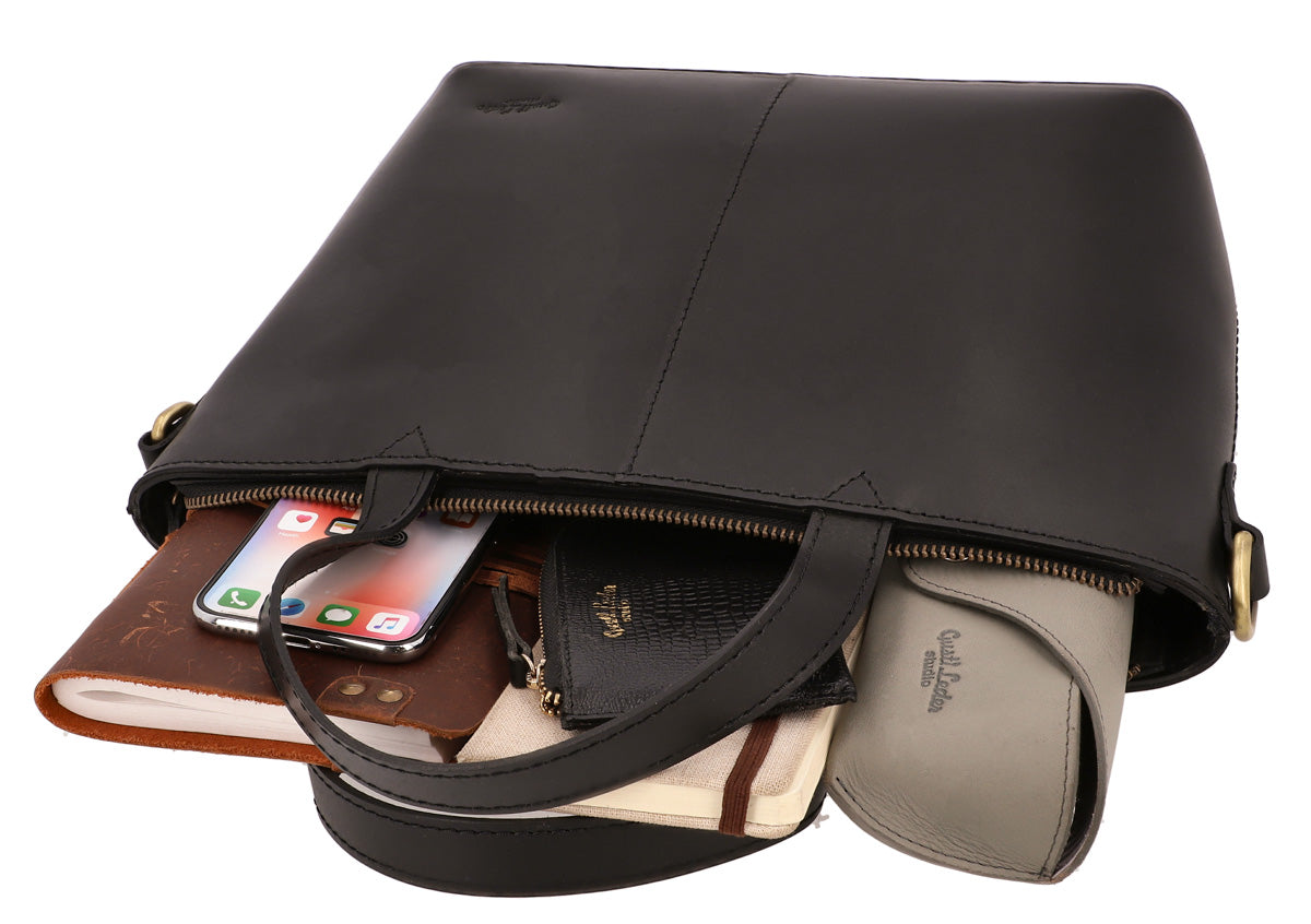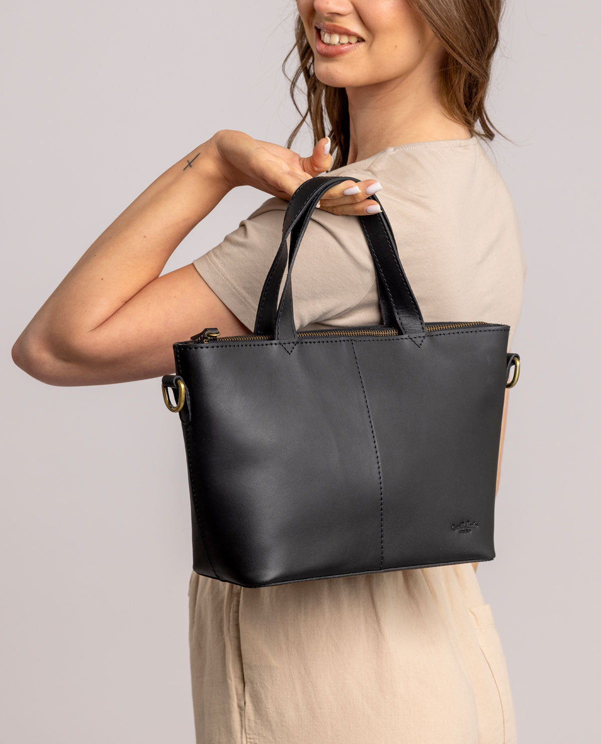 Tote bag håndtaske skuldertaske lædertaske sort læder