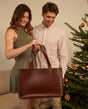 Det ekstra store indvendige rum i Agatha har nok plads til din 15 tommer bærbare, din drikkedunk, pung, notesbøger, nøgler og penalhus. Desuden tilbyder den store åbning nok opbevaringsplads til en spontan indkøbstur. Bærehåndtagene af ægte læder fuldender designet, mens muligheden for at personliggøre Agatha med en dedikation gør den til en særlig personlig gave. Denne taske vil ikke kun opfylde din hverdag, men også støtte en branche, der arbejder for miljøbeskyttelse og fair arbejdspraksis. Et must-have for alle, der ønsker at forene funktionalitet og stil.
