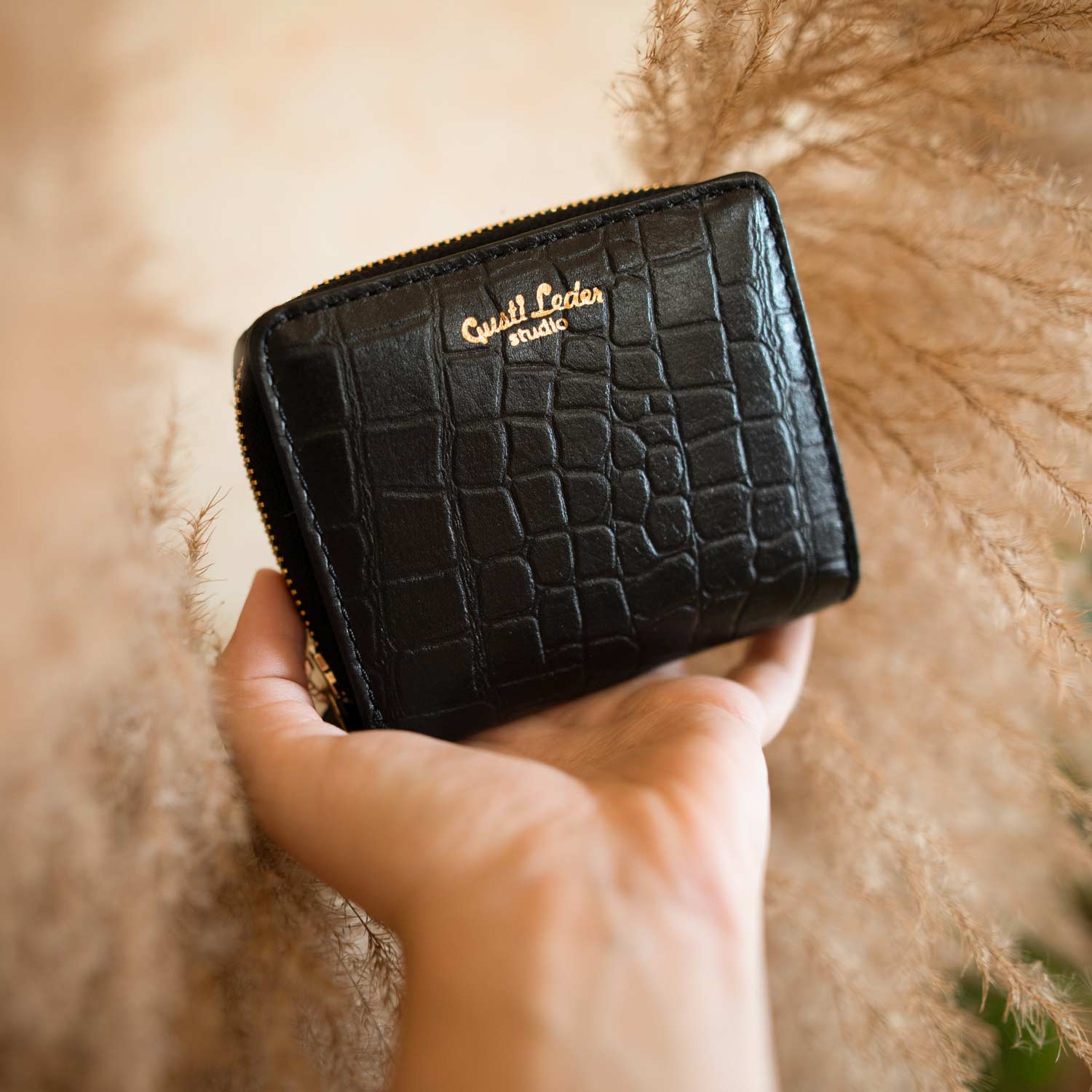 Leder du efter en klassisk pung med nok plads til dine mange kort med ekstra stort møntrum? "Monika" tilbyder dig præcis det og imponerer også med sit trendy krokodillelook! Dermed forener Monika maksimal funktionalitet og er stadig helt på trend.