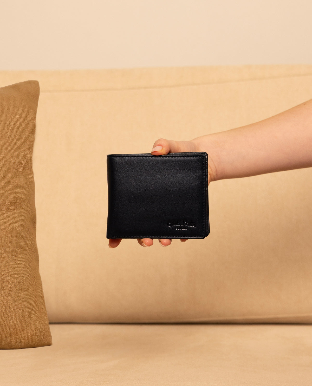 Vores pung "Foster" kommer i et klassisk look. Fremstillet af robust koskind, er "Foster" en livslang ledsager. Når den er hurtigt åbnet, finder du mindst seks rum til dine betalingskort. Dit ID-kort kan du opbevare i et gennemsigtigt rum. I et separat rum kan dine pengesedler finde plads, og naturligvis er der også et møntrum inkluderet, så dine småpenge ikke længere rasler rundt i din taske. Dette lukkes sikkert med en trykknap.