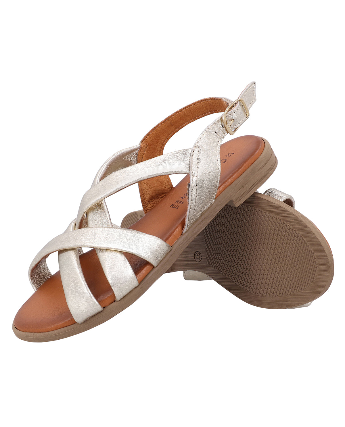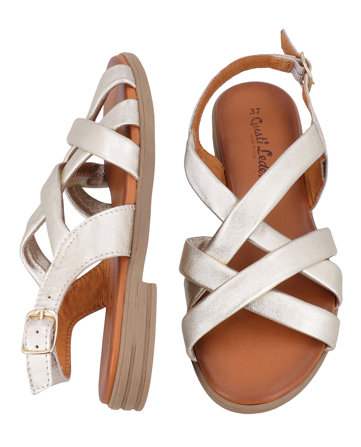 For at du kan være komfortabel hele dagen har "Rafaela" en indersål af smidigt Gedeskind, der smyger sig blødt om din fodsål. Den justerbare rem ved hælen med guldfarvet spænde garanterer et sikkert hold, mens den lette ydersål sikrer en ubesværet følelse. Denne sandal til kvinder er designet til at holde længe og sætter et stilfuldt præg på ethvert outfit.