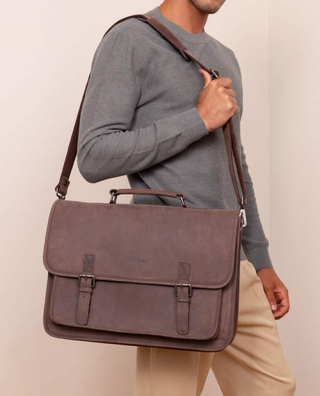 Men vores skuldertasker overbeviser ikke kun med deres skønne look, de imponerer også med deres funktionalitet og tilpasser sig lige nøjagtigt til dine individuelle behov. De mange udvendige og indvendige rum og lommer giver dig mulighed for at have din laptop, mapper, kalender og din yndlingsbog med dig overalt - uanset om til universitetet, arbejdet eller i fritiden. Vores skuldertasker er fremstillet af 100 % ægte læder i god kvalitet. De forskellige lukke-metoder spænder, magnetknap, lynlåse og velcro sørger for, at dine ejendele ligger trygt og godt opbevaret på farten.