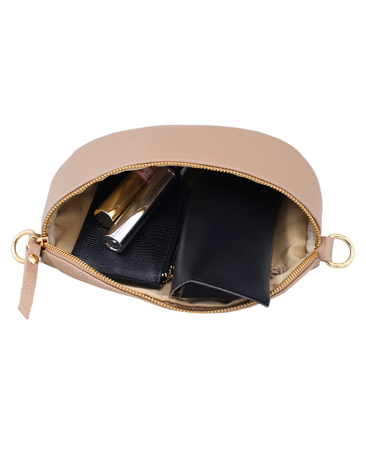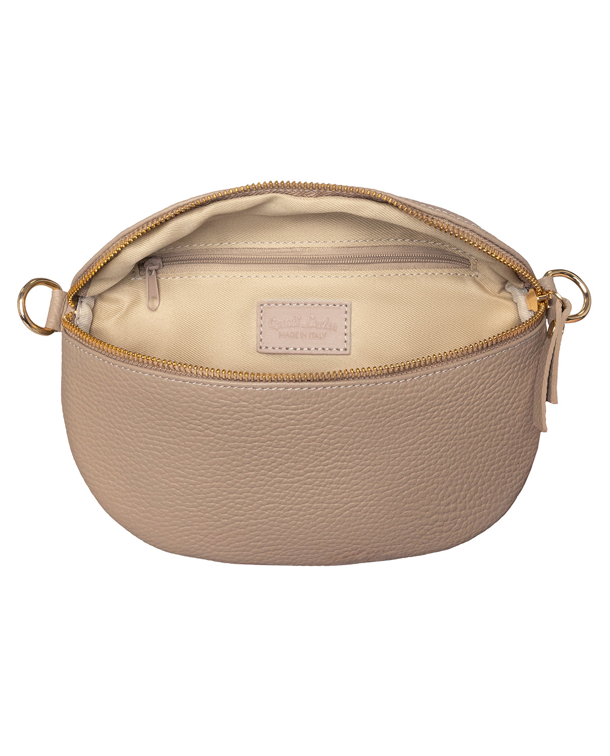 "Brinja" skuldertaske imponerer med sit elegante design og høje funktionalitet. Med den markante, halvrunde silhuet og den fuldstændige lynlås langs den øverste kant tilbyder den ikke kun tilstrækkelig plads til dine nødvendigheder, men også sikkerhed for alle dine personlige ejendele. Det højkvalitets læder giver den et fornemt udseende, der passer perfekt ind i din moderne hverdag. Indeni finder du også det fint præget "Made in Italy"-logo, der imponerende understreger taskens oprindelse og kvalitet.