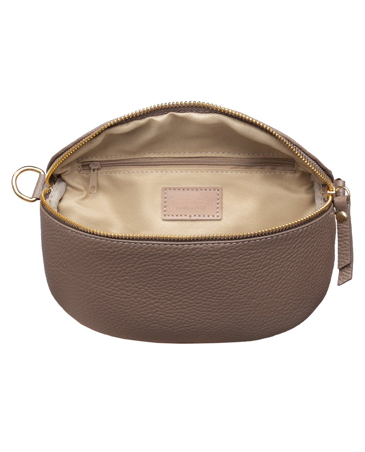 "Brinja"-skuldertasken imponerer med sit elegante design og høje funktionalitet. Med den markante, halvmåneformede silhuet og den fulde lynlås langs den øverste kant tilbyder den ikke kun rigelig plads til dine nødvendigheder, men også sikkerhed for alle dine personlige ejendele. Det højkvalitets læder giver den et ædelt udseende, der perfekt passer ind i din moderne hverdag. Indeni finder du også det fint præget "Made in Italy"-logo, der imponerende understreger taskens oprindelse og kvalitet.