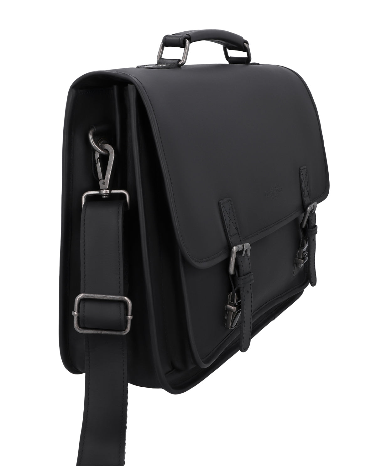 Aktetasken "Elmar" er en lædertaske til forretningsbrug for kvinder og mænd, der ønsker at organisere deres arbejdsdag på en overskuelig og samtidig fleksibel måde. Den er holdt i klassisk sort, hvilket giver den et roligt, professionelt og tidløst udtryk. To bæremuligheder – takket være en ekstra skulderrem – giver dig mulighed for at bære "Elmar" elegant i hånden eller komfortabelt over skulderen, alt efter situationen. Et integreret laptoprum beskytter dit arbejdsredskab pålideligt og gør denne lædertaske til den ideelle ledsager til kontoret, møder eller forretningsrejser.
