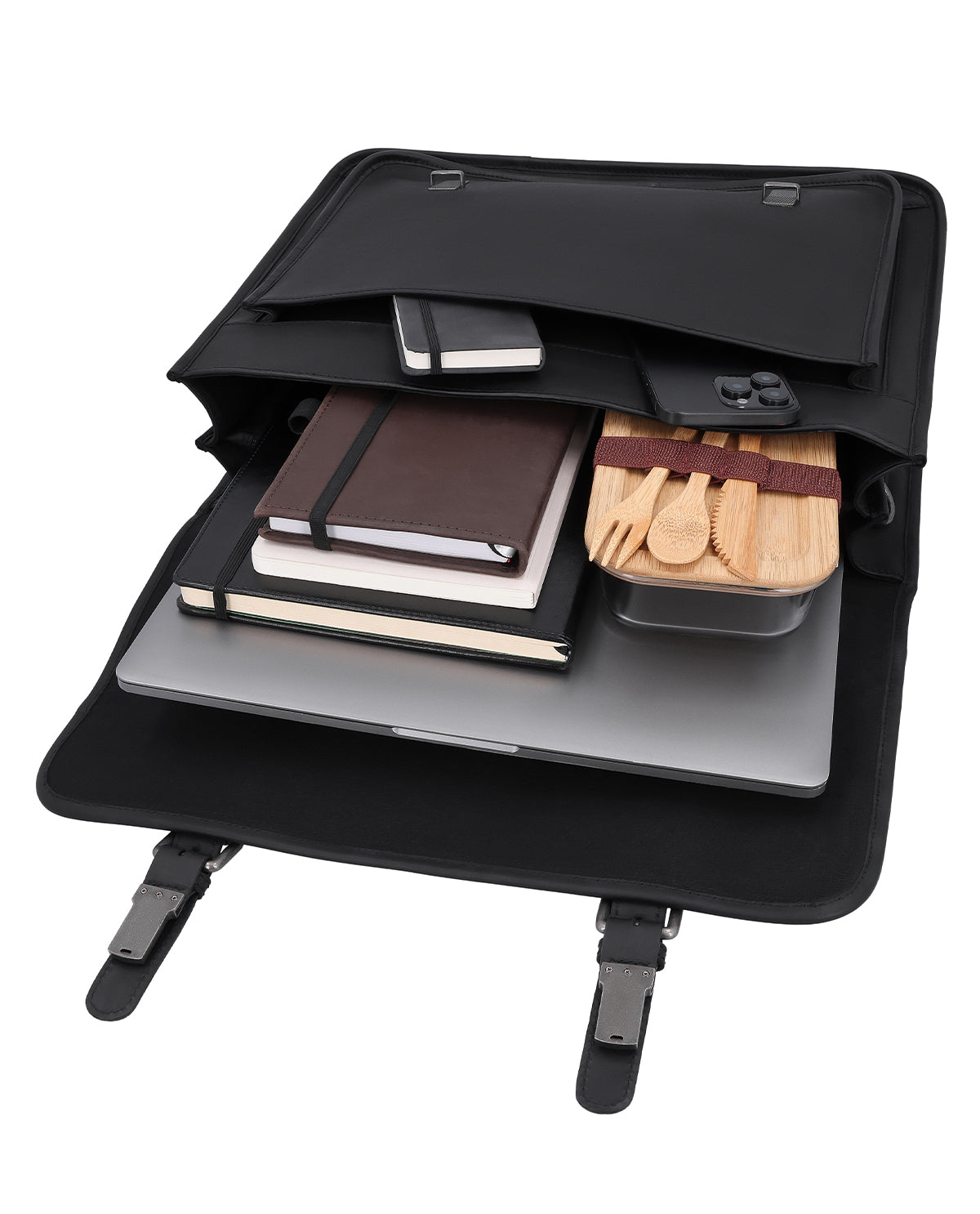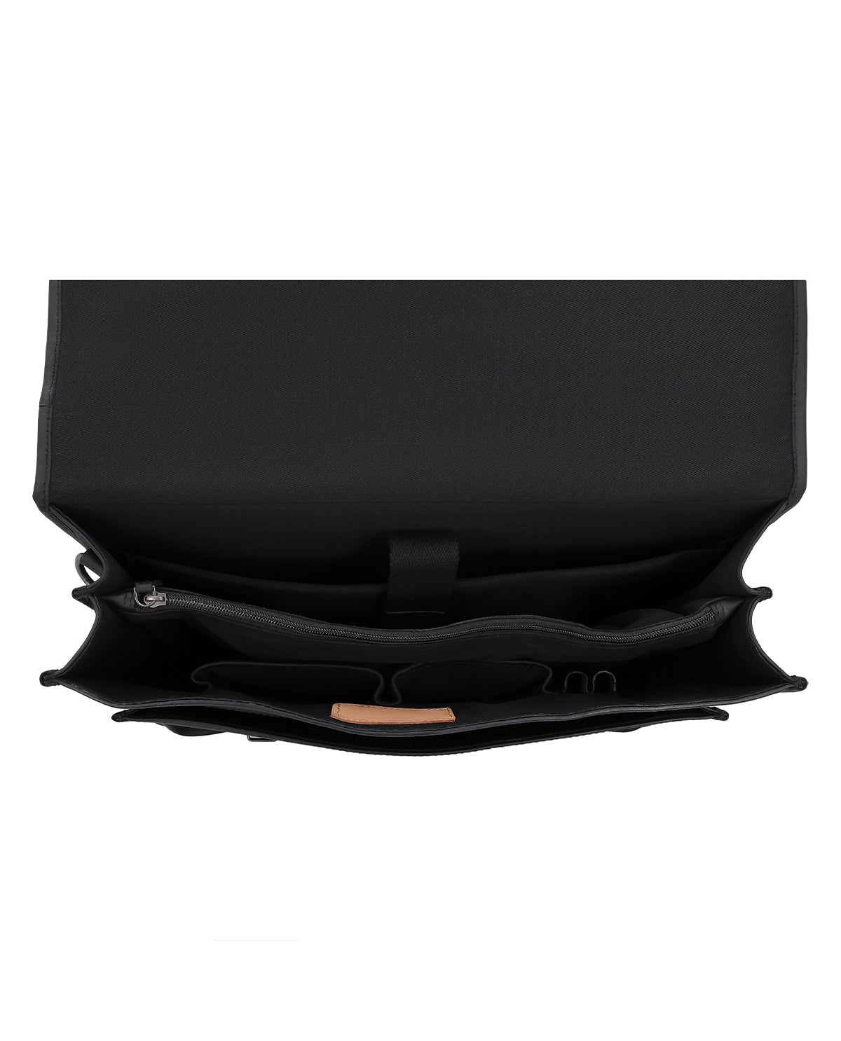 Indvendigt sørger to stiklommer og en lynlåslomme for oversigt, suppleret med praktiske penneholdere, der holder dine arbejdsredskaber inden for rækkevidde. En ekstra lynlåslomme udvendigt giver hurtig adgang til vigtige dokumenter eller din smartphone. Skulderremmen er justerbar og aftagelig og tilpasser sig fleksibelt til din hverdag. Et graveret patch giver plads til personalisering, mens den klare inddeling gør denne lædermappe til en struktureret, pålidelig ledsager i hverdagen.