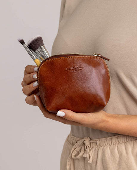 Hækletaske hækletui strikketaske opbevaring dame herre brun læder