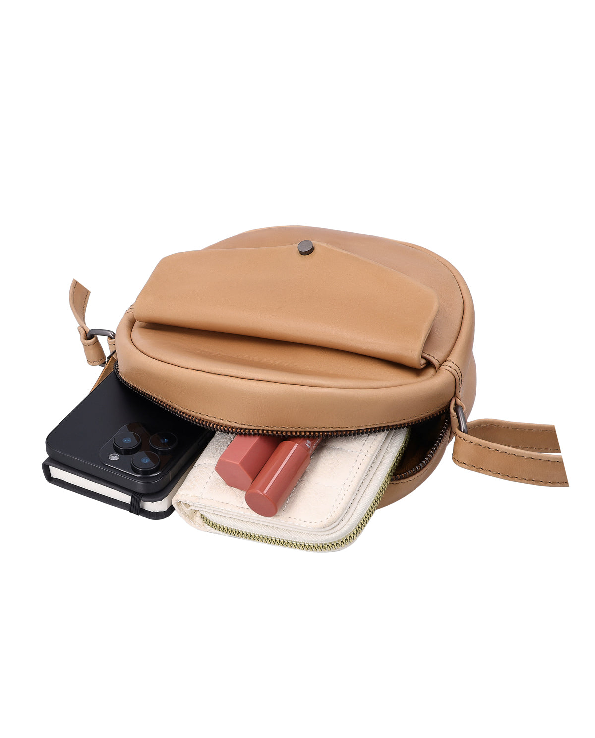 Den lille skuldertaske "Tora" er en alsidig læderhåndtaske til kvinder, der ønsker at kombinere funktionalitet og stilfuld diskretion. Den er fremstillet af højkvalitets oksekind i blødt beige og har et moderne og behageligt tidløst look. Et skjult AirTag-rum giver ekstra sikkerhed, mens en aftagelig nøglering holder dine vigtigste ting lige ved hånden. På trods af sin kompakte form tilbyder "Tora" netop den plads, du har brug for i hverdagen – overskuelig, let og altid passende.
