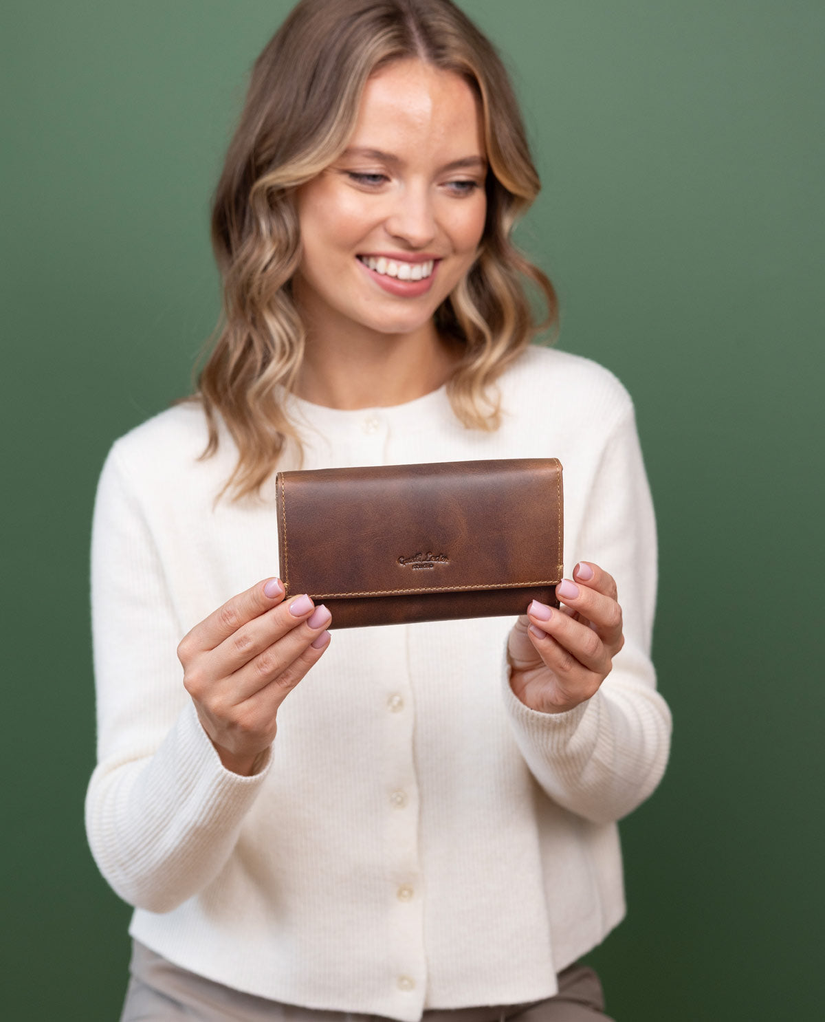Leder du efter en stilfuld og funktionel pung, der opfylder alle dine behov? Inspireret af Berlin er vores damepung i ægte brunt læder den perfekte følgesvend til din hverdag. Den kombinerer elegant design med høj funktionalitet.