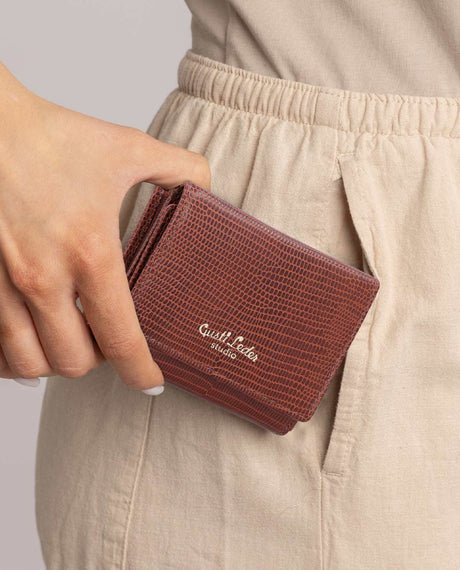 "Gusti Leder studio"-linjen tilbyder moderne og funktionelle punge i koskind og bøffellæder, der fremstilles i certificerede virksomheder og kemisk garves. Disse modeller imponerer med holdbarhed og tidløst design.