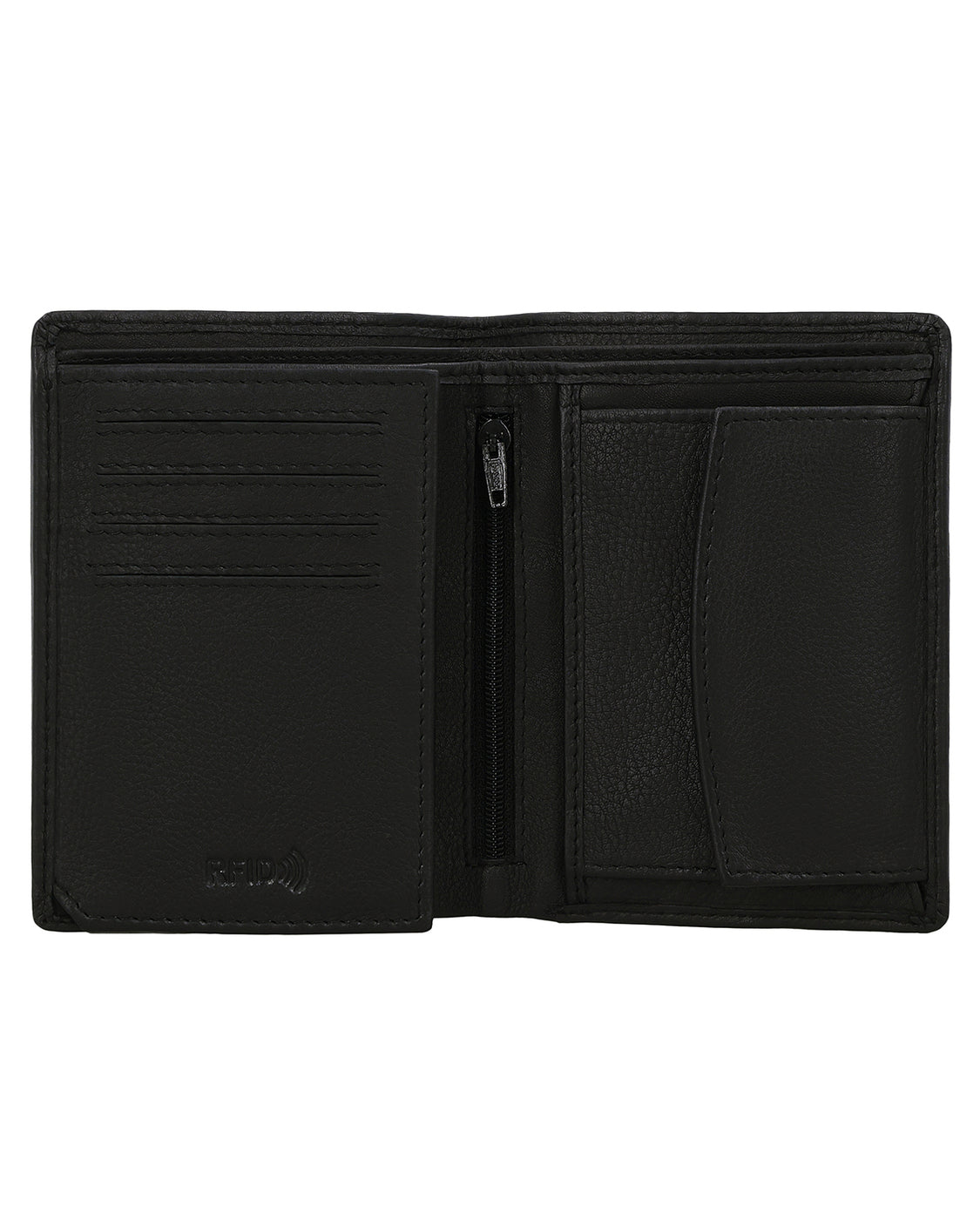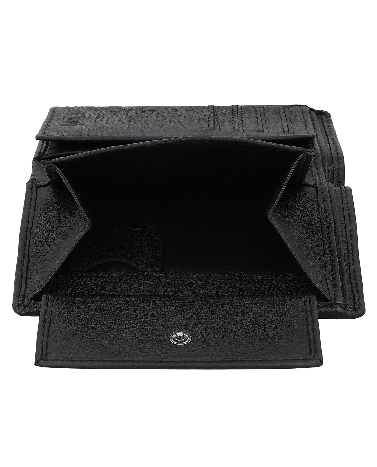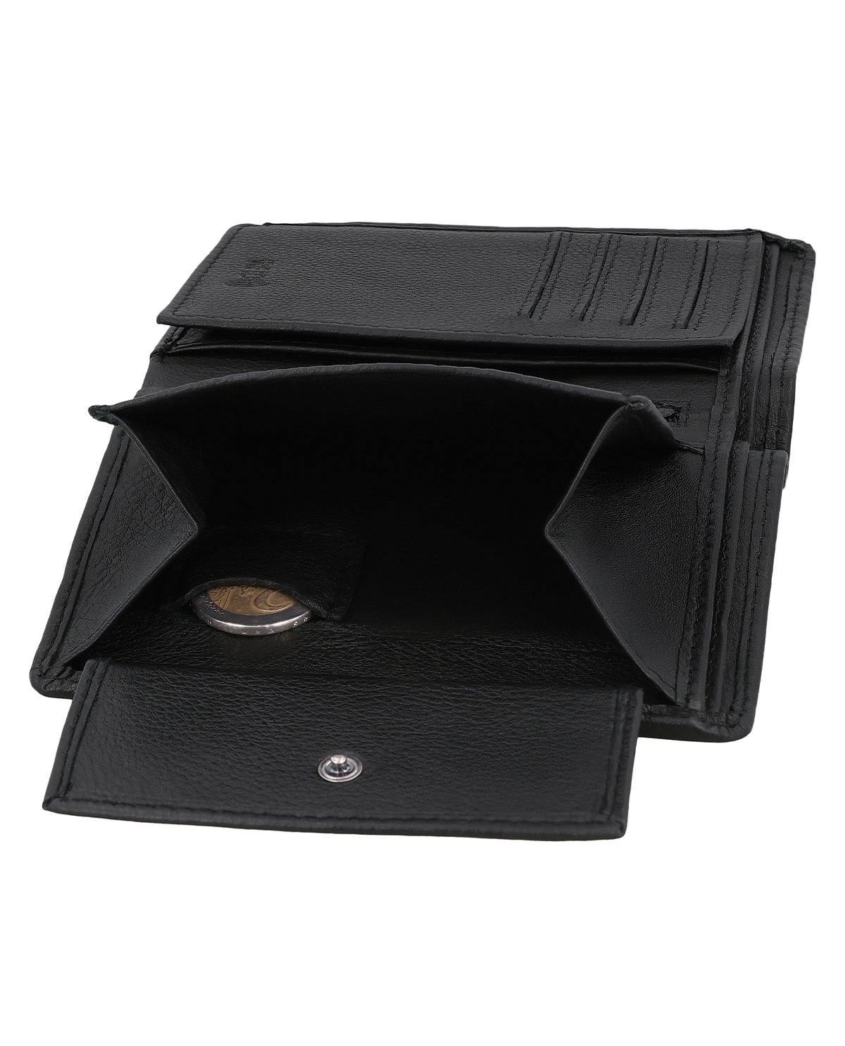 På trods af sin kompakte form overrasker læderpungen indvendigt med en rummelig og meget overskuelig indretning bestående af to seddelrum, et separat møntrum, der kan åbnes med en trykknap, samt 8 stiklommer til (mindst) lige så mange kort. Derudover er der et ekstra møntrum til præcis en enkelt mønt – ideelt, hvis du f.eks. hurtigt vil have den rigtige mønt ved hånden til at låse en indkøbsvogn op. Et ekstra integreret flip-rum udvider tegnebogen med et stort vindue, hvor du nemt kan opbevare dit ID-kort, kørekort eller fotos af dine kære. Et andet "nice-to-have" er det lille lynlåslomme, hvor du kan opbevare helt særlige værdigenstande, samt de to sidelommer bag mønt- og kortlommerne.