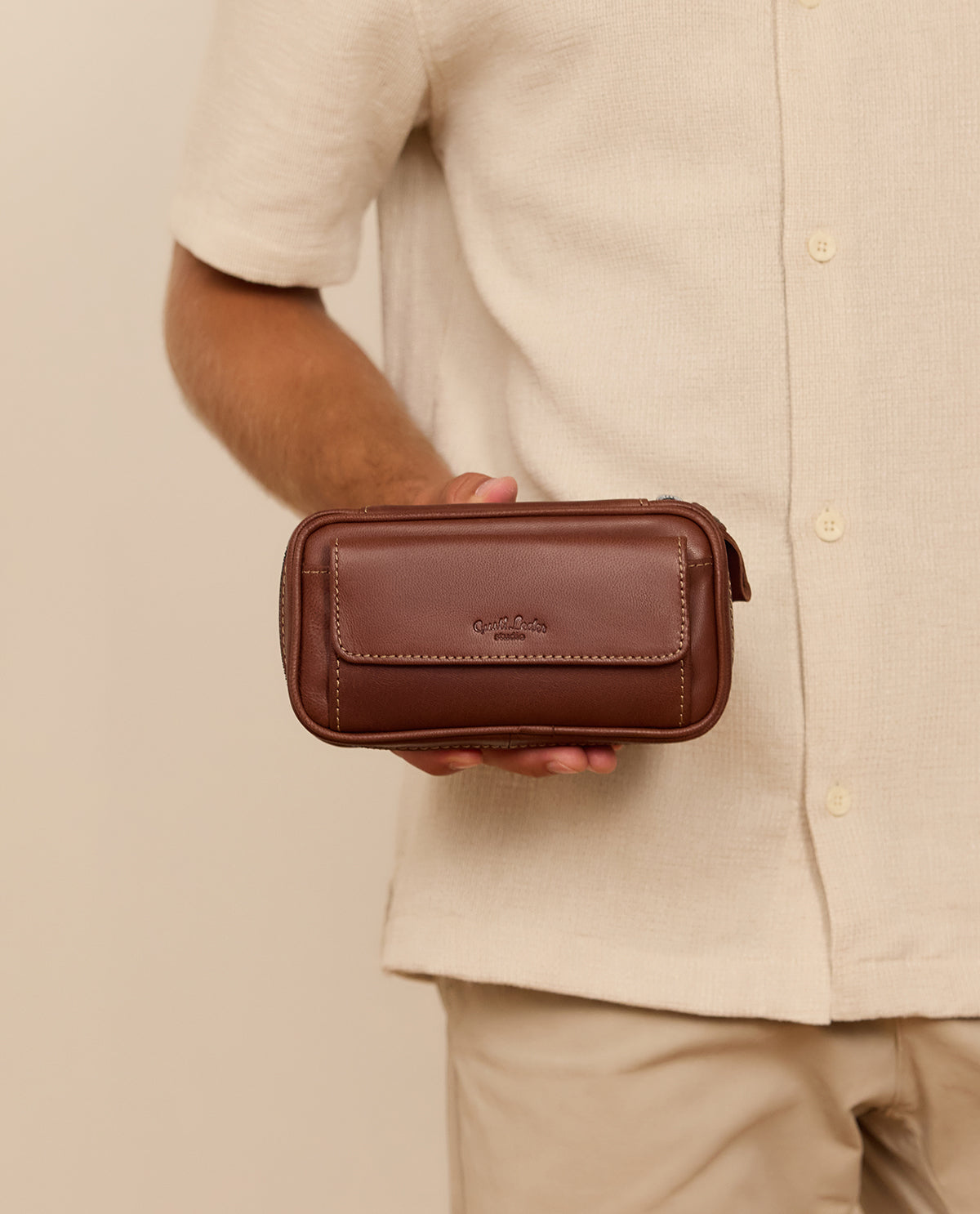 "Diego", dette praktiske pibeetui lavet af højkvalitets forarbejdet læder giver dig en fast plads til dit pibeudstyr uden at gå på kompromis med stil. Takket være det enkle design brillierer "Diego" med sin høje grad af funktionalitet og præsenterer dine piber på en behagelig og afslappet måde.