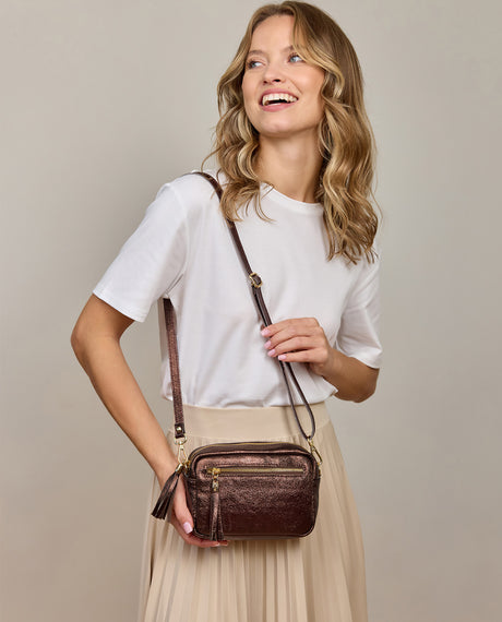 Mit ihrem klassischen Design und dem weichen, samtartigen Leder ist die "Maite" nicht nur funktional, sondern auch ein wahrer Hingucker. Ihr minimalistisches Format ermöglicht Dir eine elegante Aufbewahrung von kleinen Gegenständen wie Münzen, Schlüsseln oder Lippenstift, die Du stets griffbereit haben möchtest. Die Tasche ist perfekt für diejenigen, die auch bei den kleinsten Details auf Qualität und Stil achten. Dank ihrer Vielseitigkeit und praktischen Handhabung wird "Maite" schnell zu einem unverzichtbaren Begleiter in Deinem Alltag.