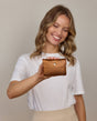Aufbewahrungstasche Geldbörse Portemonnaie Geldbeutel Organizer klein Ledertasche Damen Braun Glänzend Leder - Made in Italy
