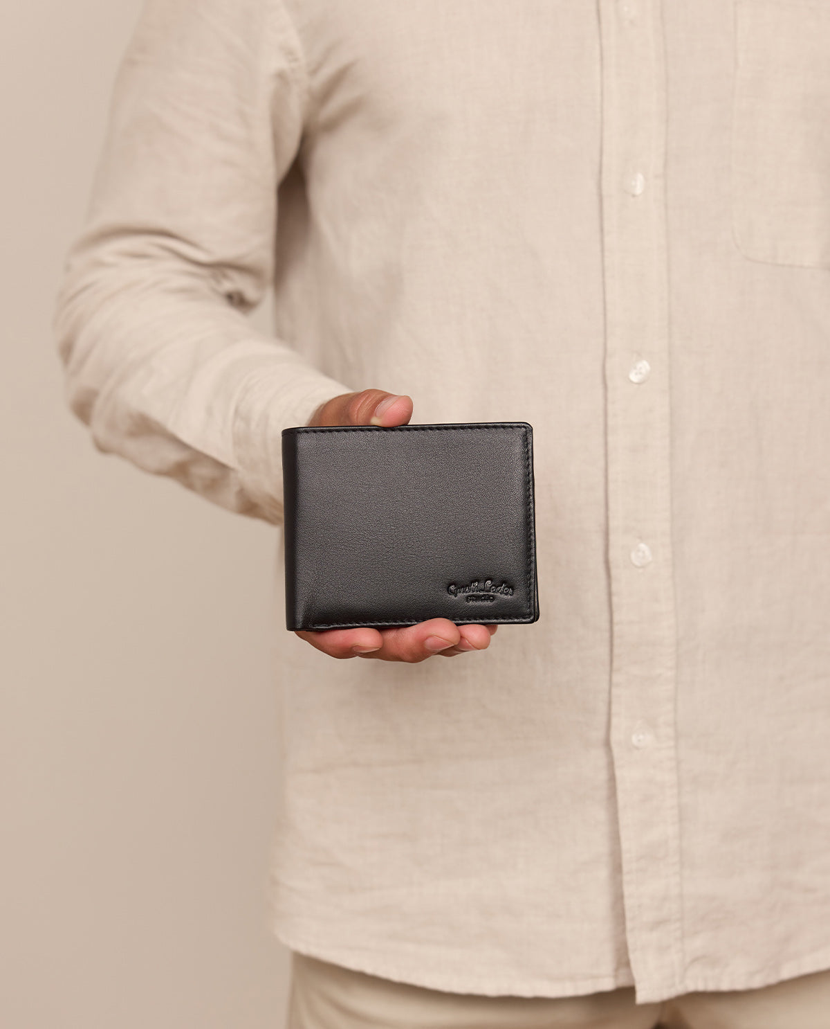 Ein schickes und praktisches Portemonnaie braucht nicht viel. Ein Fach für Kleingeld, ein Fach für Scheine und eines für Kassenzettel, ein paar Kartensteckplätze und dann noch ein Extrafach für den Ausweis. Deswegen hält Regis es klassisch und verzichtet auf alles, was zwar noch hinzugefügt werden könnte, aber eigentlich doch nur Schnickschnack ist. Als ganz einfaches Klappportemonnaie aus robustem Rindsleder überzeugt Regis durch Schlichtheit und Praktikabilität. In diesem praktischen Format passt es in jede Hosentasche und man hat immer alles dabei, was man braucht. Erhältlich in elegantem Schwarz oder lässigem Braun- sodass für jeden Geschmack etwas dabei ist.
