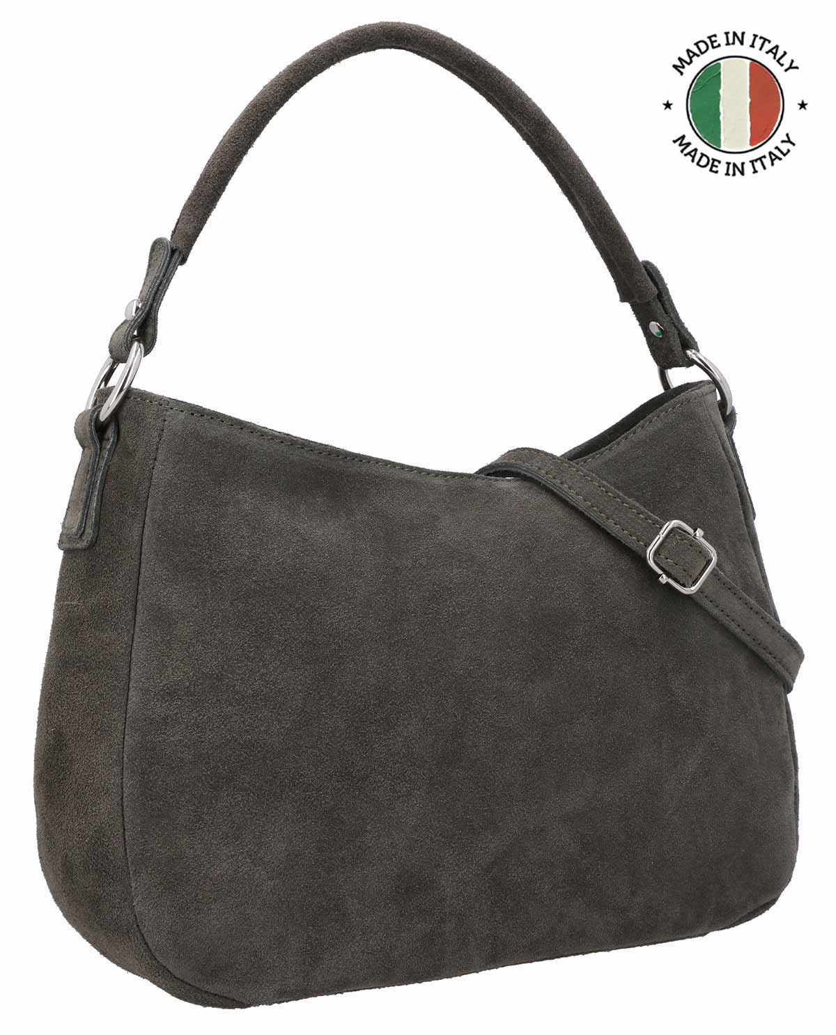 Umhängetasche Ledertasche Handtasche Damen Grau Leder - Made in Italy