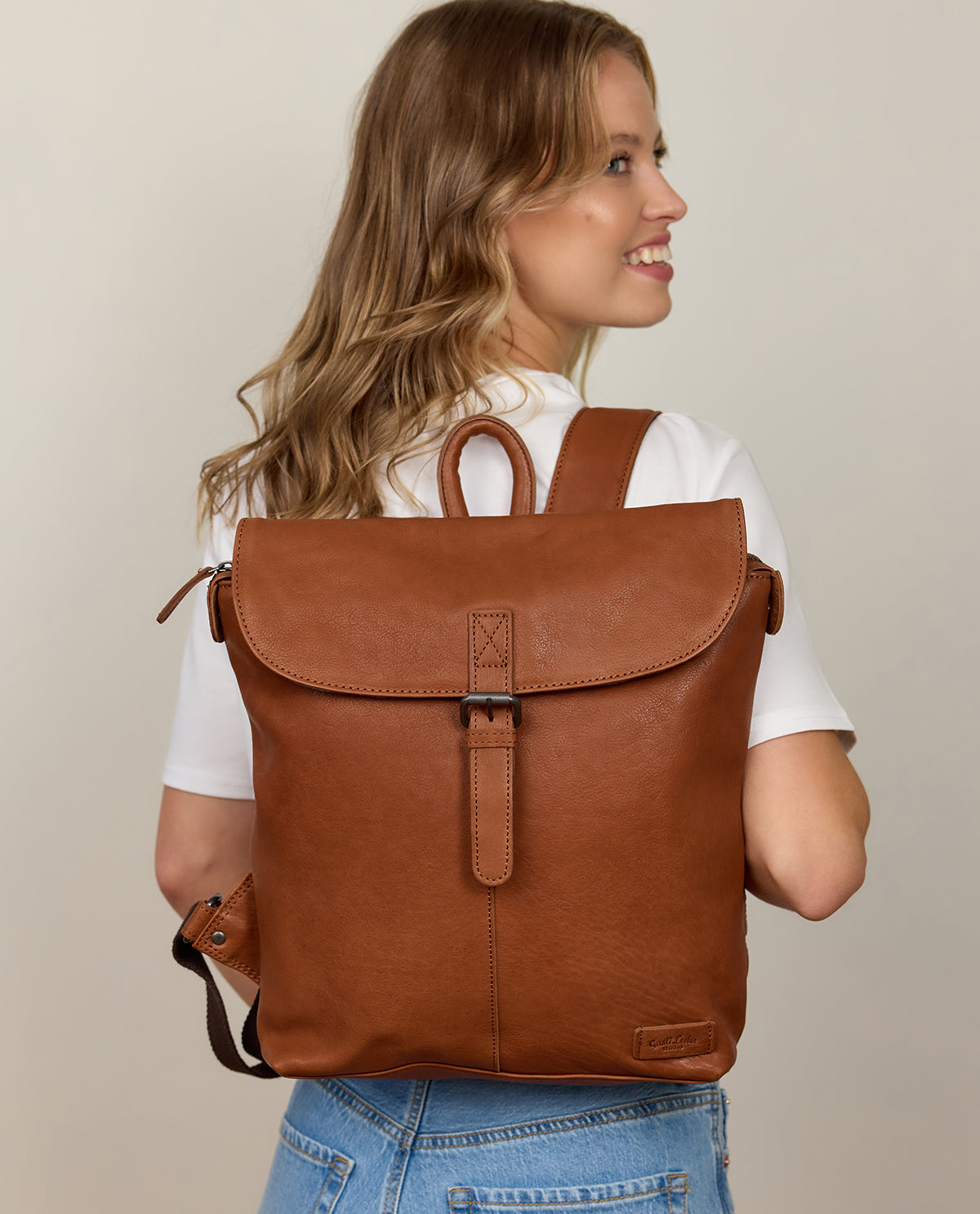 Rucksack Lederrucksack mit Reißverschluss und Schnalle diebstahlsicher Designed in Berlin Braun Leder Damen Herren