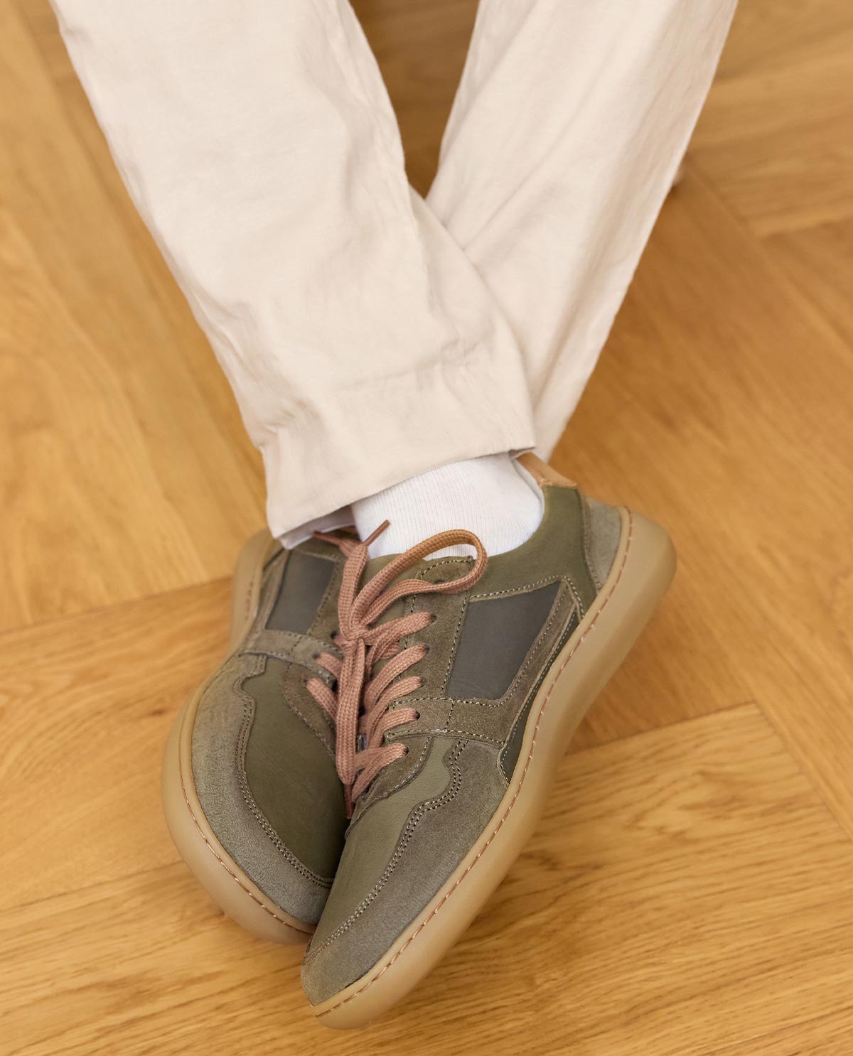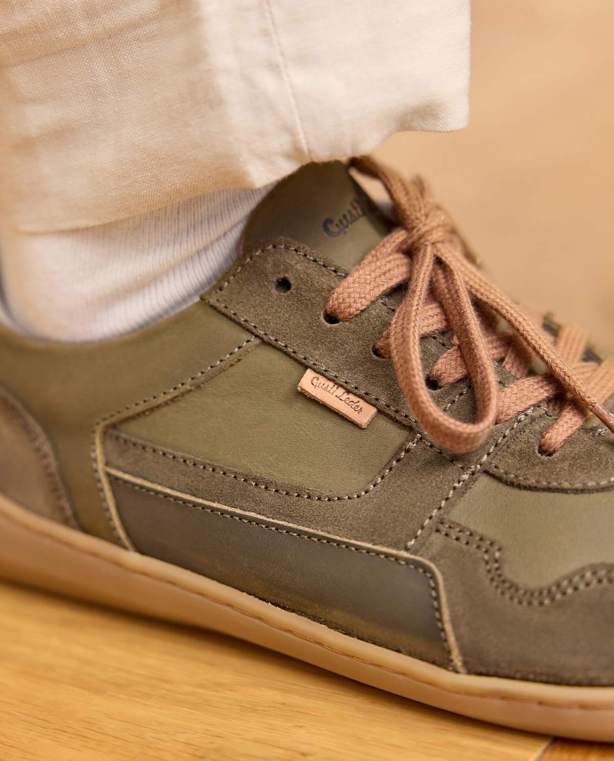 Schuhe Barfußschuhe Lederschuhe Sneaker Herren Grün Leder