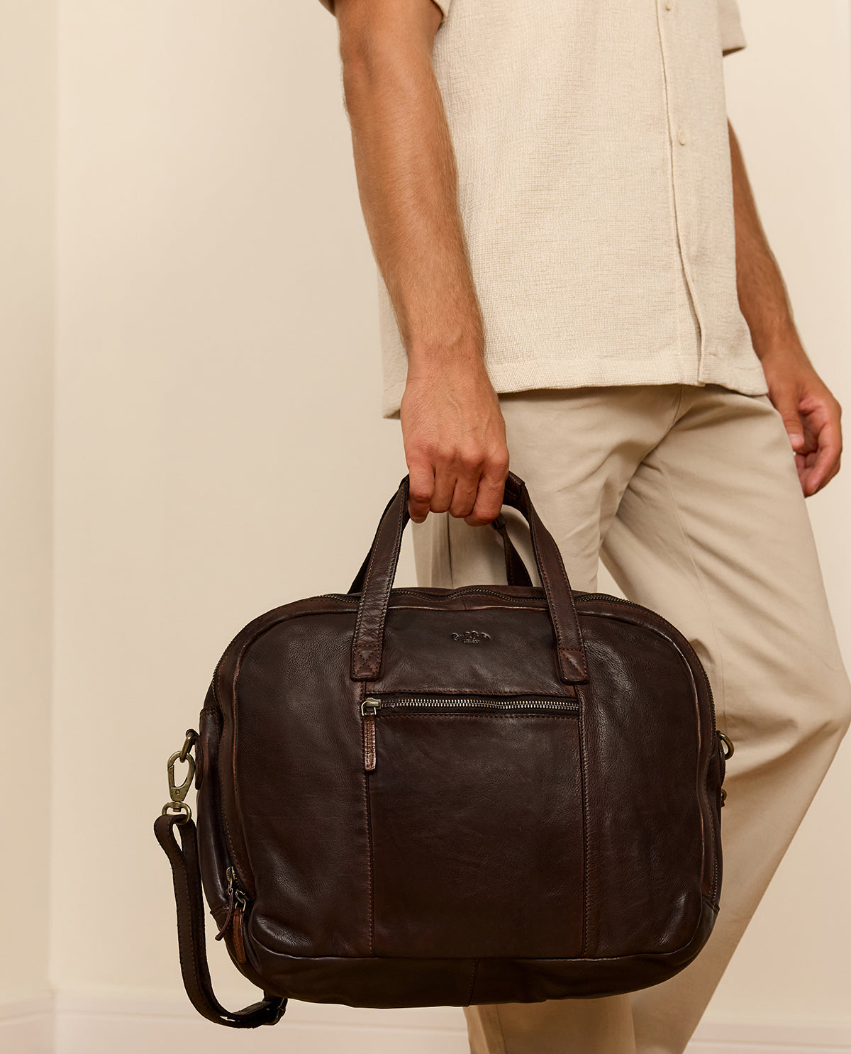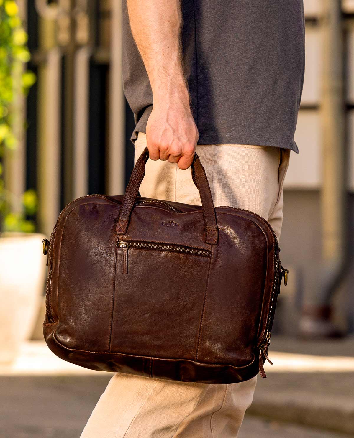 Unsere Unitasche ist aus erstklassigem Leder gefertigt. Das geschmeidige und strapazierfähige Material verleiht der Tasche nicht nur einen eleganten Vintage-Look, sondern sorgt auch für eine lange Lebensdauer. Jede Tasche ist handgefertigt und besticht durch ihre einzigartige Maserung und Farbgebung. Das zeitlose Design passt perfekt zu jedem Outfit und Anlass, ob im Büro, bei Meetings oder auf Geschäftsreisen.