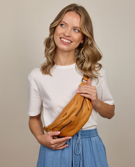 Gürteltasche Bauchtasche Festivaltasche klein Cognac Leder