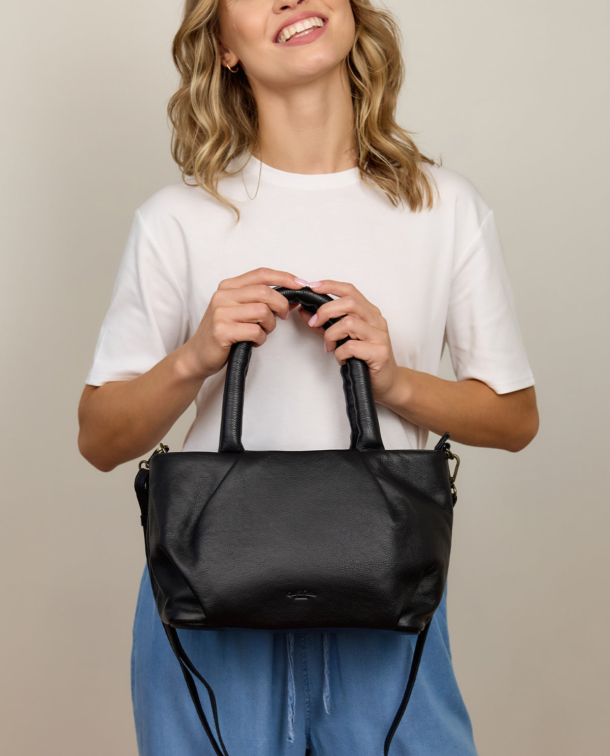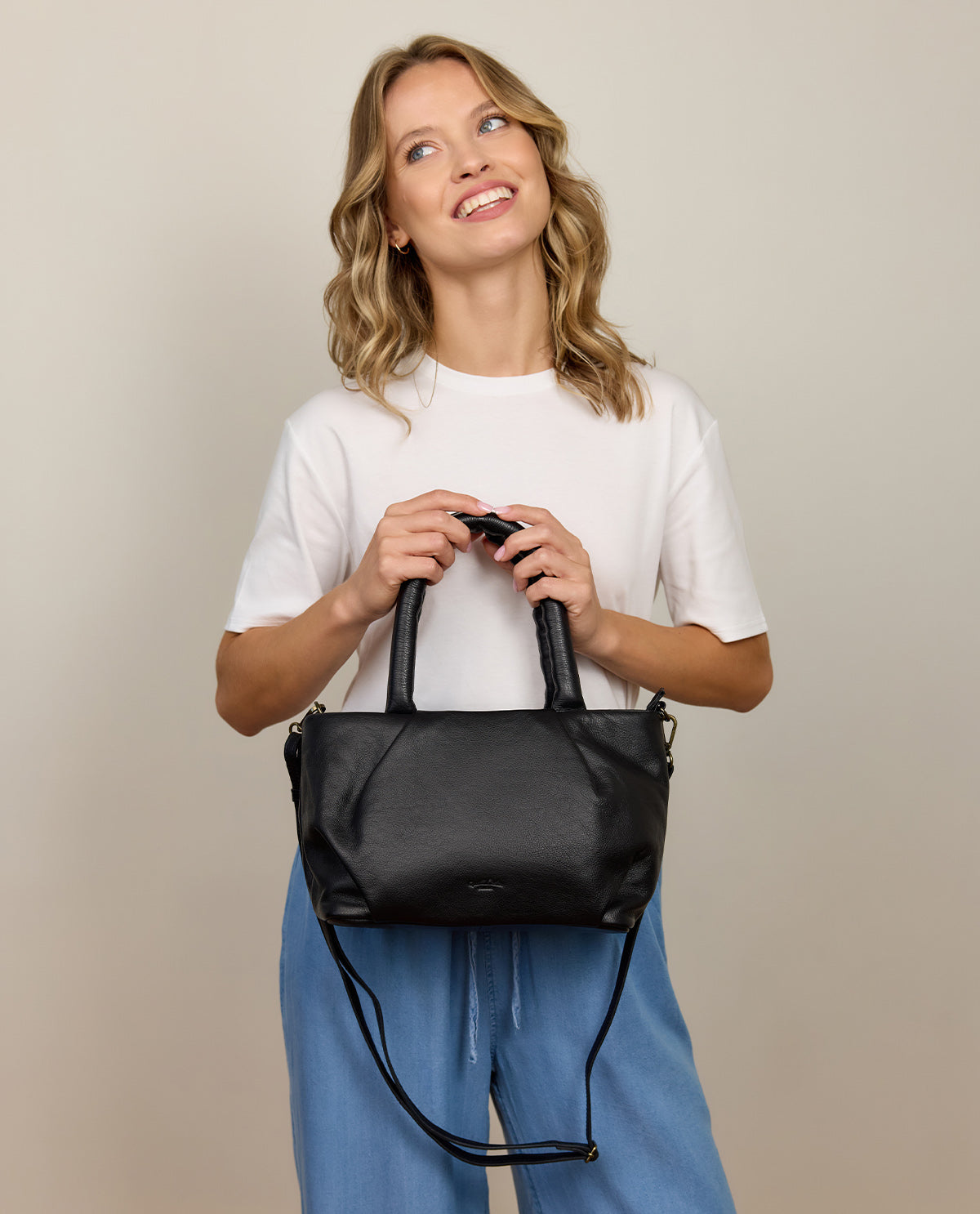 Mit großzügigem Stauraum bietet die Handtasche "Roswitha" ausreichend Platz für all Deine wichtigen Utensilien. Ob im Büro, beim Shoppen oder bei einem Abendessen – sie ist vielseitig einsetzbar.
