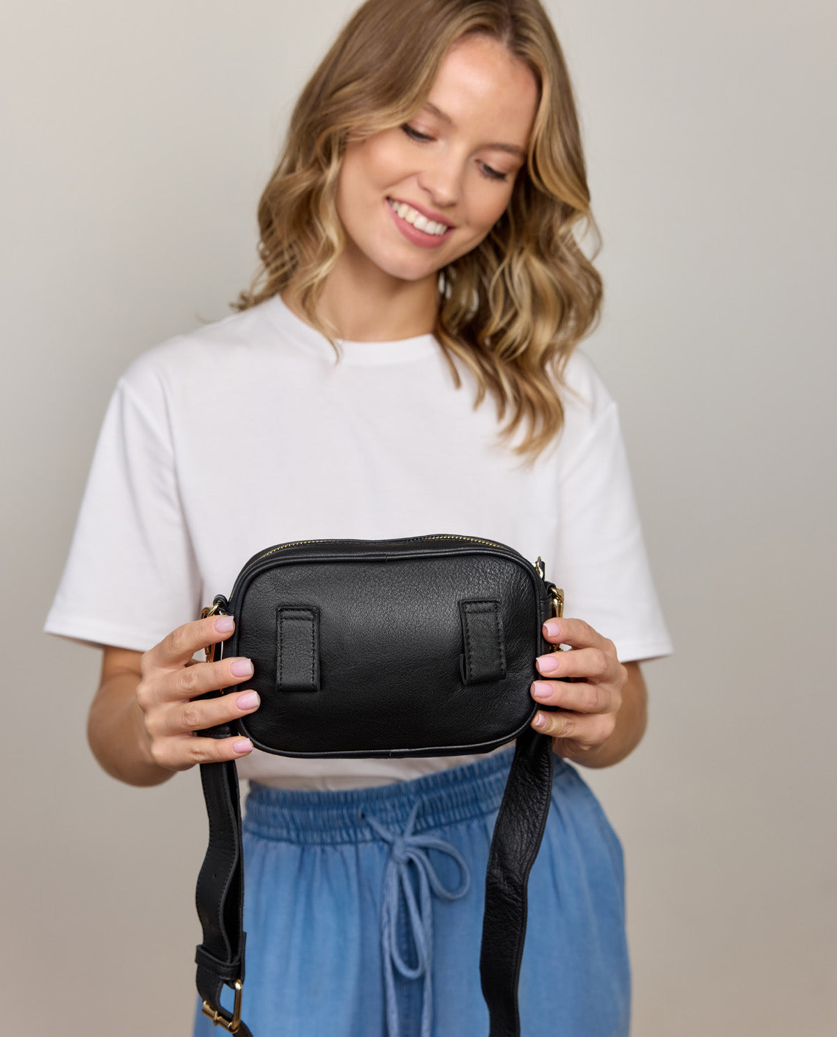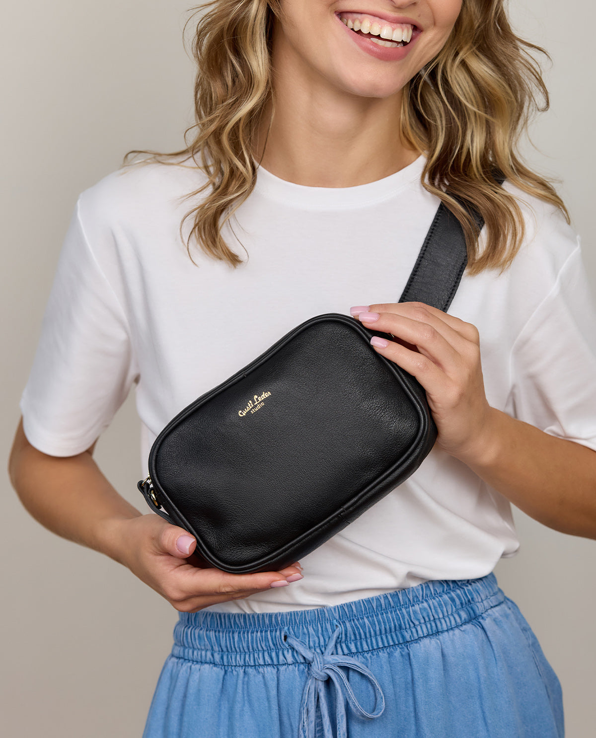 Gefertigt aus aus hochwertigem echtem Leder verfügt "Sophia" über ein Hauptfach, sodass du den größtmöglichen Platz rausholen kannst - besonders wenn du lediglich das Nötigste dabei haben willst. Hier kannst du bequem Portmonnaie, Make Up, Schlüssel, Handy und Kopfhörer untebringen. Ein Reißverschluss schützt deine 7 Sachen zuverlässig und verhindert ein Herauspurzeln.Die Tragerienen kannst du per Karabiner an "Sophia" befestigen. Die beiden Schlaufen auf der Rückseite erlauben es "Sophia" an deinem Gürtel zu befestigen. Genieße die Freiheit der Wahl - mit "Sophia"!