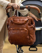 Praktischer und stilvoller Wickelrucksack "Carina" aus braunem Leder für Eltern auf Achse