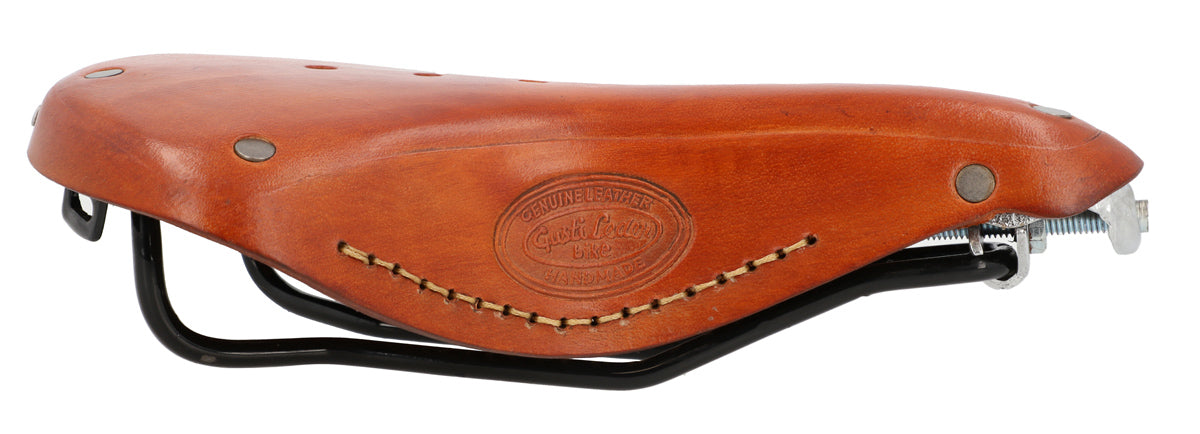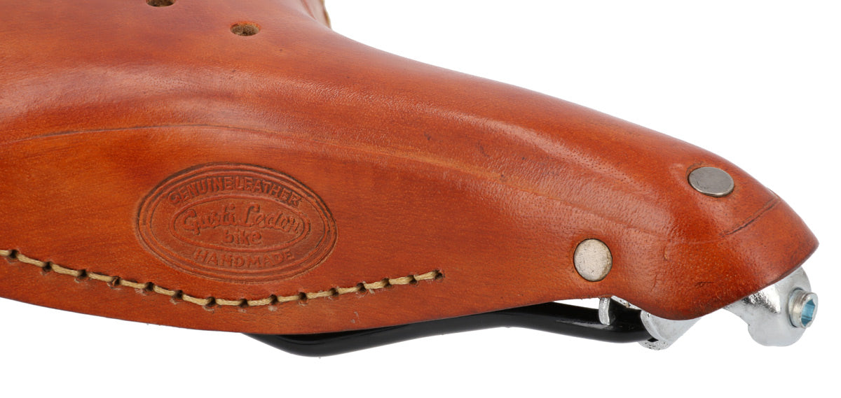 Der strapazierfähige "Tadej P." bedarf zwar aufgrund seiner festen Beschaffenheit zunächst einige Zeit um sich einzufahren, belohnt dich dann aber mit einem einmaligen perfekt auf Dich angepassten Sitzkomfort. Ähnlich wie bei einem Lederschuh,der mit der Zeit sich an deinen Fuß anpasst, gibt der Sattel so etwas nach und ist dann individuell auf dich abgestimmt. Mit ein wenig regelmäßiger Lederfett Pflege wirst Du sicher viele Jahre Freude an Retro Sattel "Tadej P." haben!
