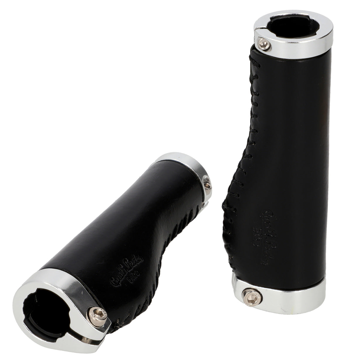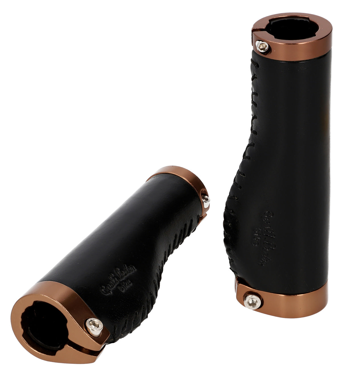 Die ledernen Lenkergriffe "Phil A." passen optisch ebenso hervorragend zu einem trendigen Single-Speed-Rad wie zum klassischen Holland-Bike und lassen sich kinderleicht montieren. Ihr hochwertiges Materialmix aus farbigem Aluminium und 100% Echtleder sorgt für hervorragenden Grip und ein konstant gutes Lenkverhalten. Gleichzeitig passen sie sich ideal der Anatomie Deiner Hände an, federn Stöße und Vibrationen ab und erhöhen so die Griffsicherheit. Nach einer kurzen Einfahrzeit wirst Du den spürbaren Komfort und die angenehme Haptik dieser Griffe nicht mehr missen wollen.