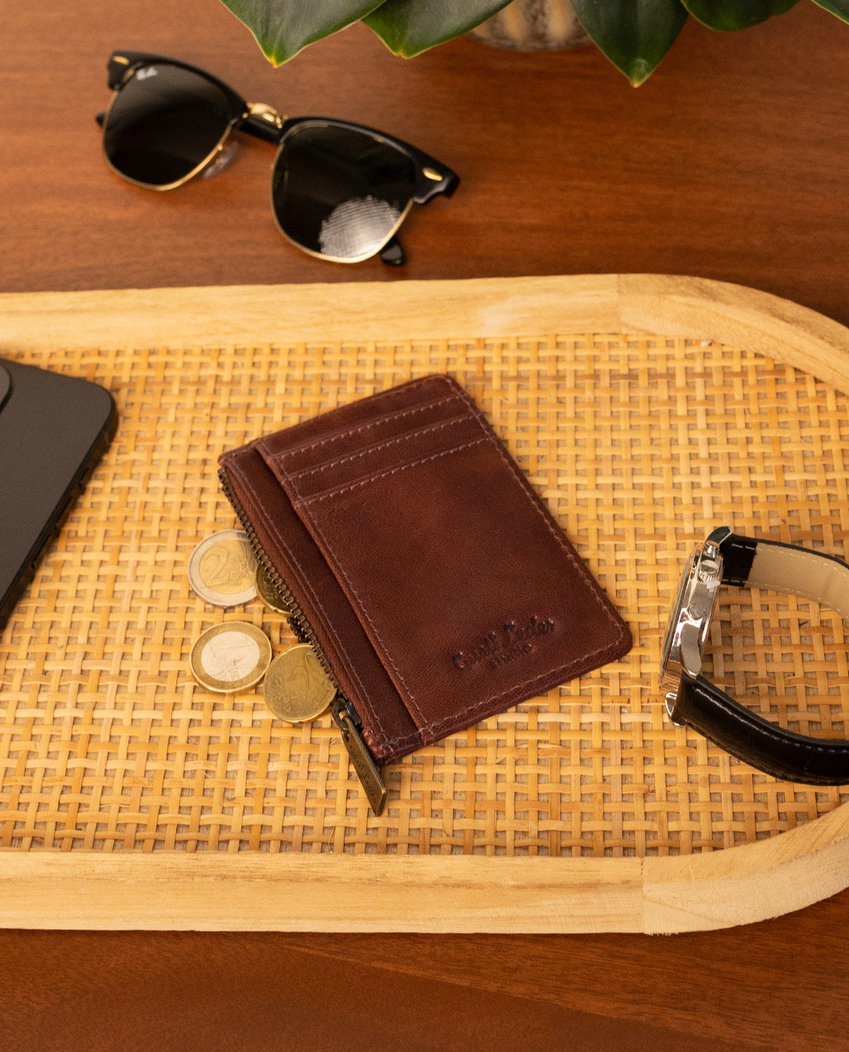 Das "Arlan" Portemonnaie ist mehr als nur ein praktisches Accessoire – es ist ein stilvoller Begleiter, der Dein Leben organisiert. Gefertigt aus hochwertigem braunem Leder, besticht es durch seine schlichte Eleganz und hervorragende Verarbeitung. Die edle braune Farbe und die feine Textur des Leders machen es zu einem zeitlosen Klassiker, der sowohl in der Tasche als auch in der Hand einen bleibenden Eindruck hinterlässt.