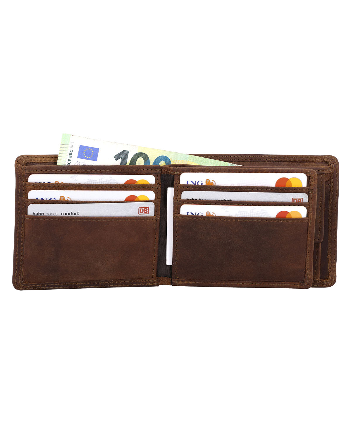 Geldbörse Portemannaie Geldbeutel Brieftasche Herren Braun Leder