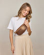 Gürteltasche Bauchtasche Umhängetasche Crossbody Tasche Ledertasche Damen Braun Glänzend Leder - Made in Italy
