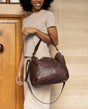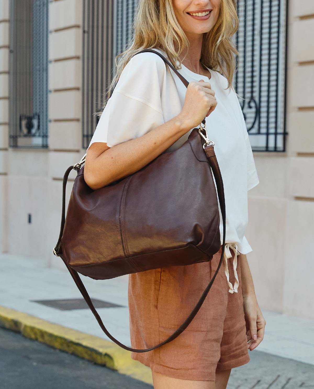 Du suchst einen klassischen Shopper, der Dich nie im Regen stehen lässt? Dann ist "Hannah" genau die Richtige für Dich. Diese mittelgroße Umhängetasche aus robustem und widerstandsfähigem Rindsleder in sanftem Dunkelbraun liegt voll im Trend. Mit ihrem geräumigen Innenfach bietet sie ausreichend Platz für alles, was Du bei einem Stadtbummel oder im Berufsalltag brauchst. Inspiriert durch den lebendigen Berliner Großstadt Flair verbindet "Hannah" urbanen Stil mit praktischer Funktionalität.