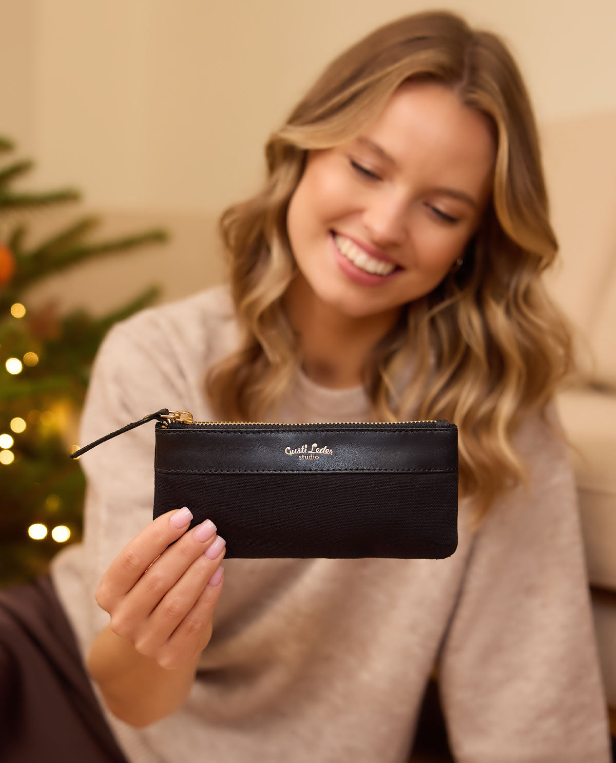 Ob für den Alltag oder auf Reisen – mit „Everly“ hast Du Deine Beauty-Essentials immer stilvoll dabei. Diese Kosmetiktasche aus edlem schwarzem Leder kombiniert zeitlose Eleganz mit praktischer Funktionalität und ist der ideale Begleiter für jede Gelegenheit.