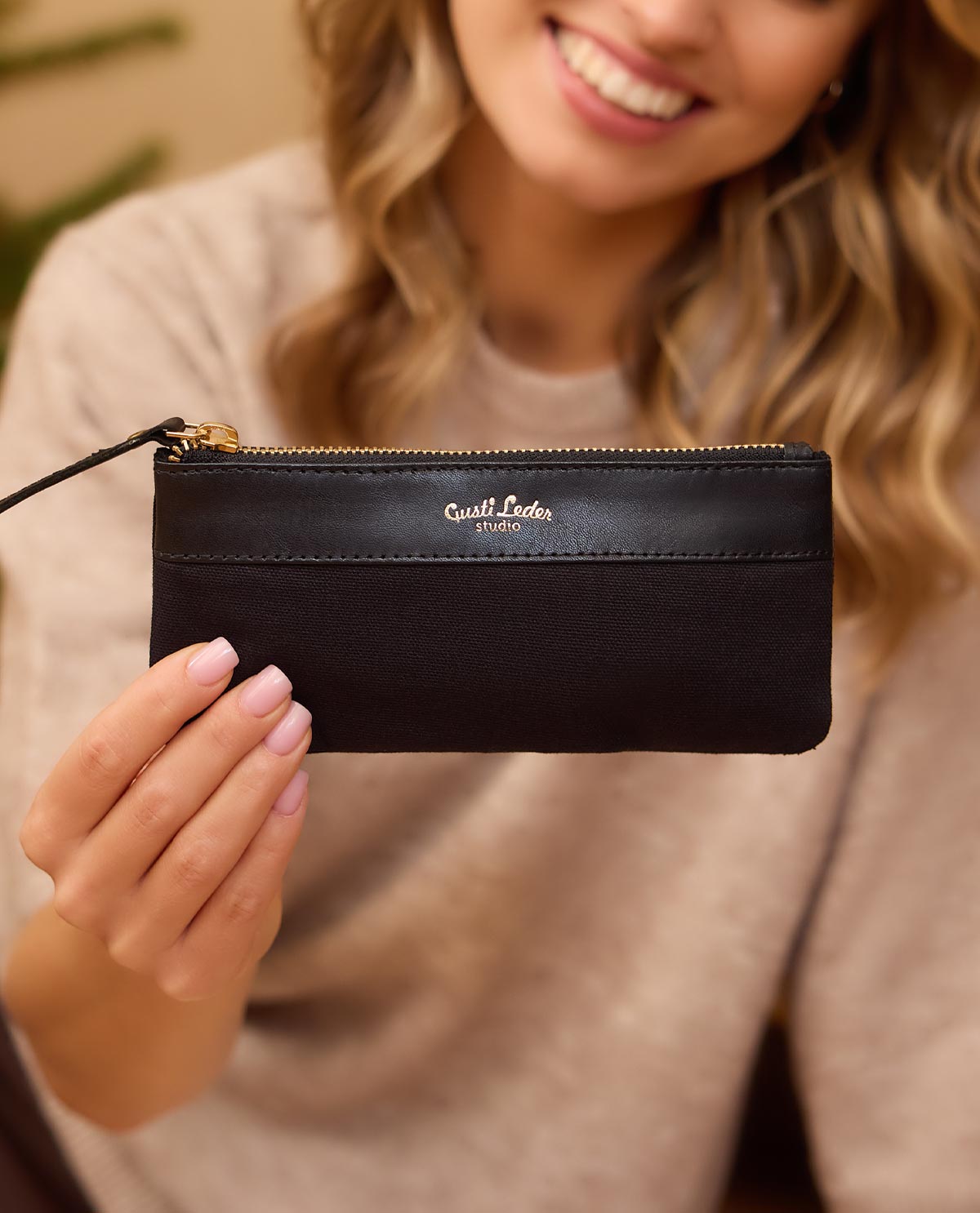 Ihr durchdachtes Design bietet ausreichend Platz für Make-up, Pflegeprodukte und kleine Accessoires, während das hochwertige Leder für Langlebigkeit und einen luxuriösen Look sorgt. Dank der kompakten Größe passt „Everly“ problemlos in Deine Handtasche oder Dein Reisegepäck.