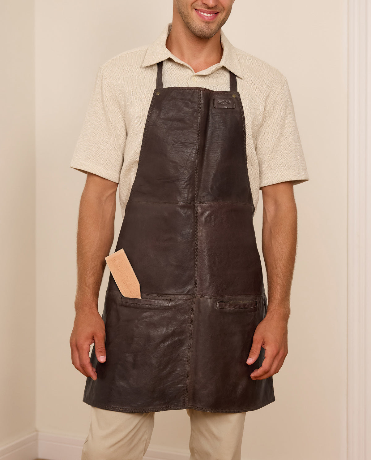 Egal, ob du leidenschaftlicher Grillmeister bist oder deine Kochkünste in der Küche verfeinerst, diese Lederschürze schützt deine Kleidung vor unerwünschten Flecken, Spritzern und Verschmutzungen.