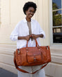 Ob für den Wochenendtrip an die Ostsee oder die nächste große Städtereise – „Harvey“ ist der ideale Begleiter für alle, die gerne unterwegs sind. Inspiriert durch den Berliner Großstadt-Flair, verbindet diese Reisetasche urbanen Charme mit maximaler Funktionalität. Gefertigt aus hochwertigem, vegetabil gegerbtem Ziegenleder, besticht „Harvey“ durch ein zeitloses Design, das auf jeder Reise eine gute Figur macht. Dank der zwei Trageweisen bist du absolut flexibel: Nutze die stabilen Handgriffe oder den zusätzlichen, verstellbaren Schultergurt, um die Tasche bequem über der Schulter zu tragen.