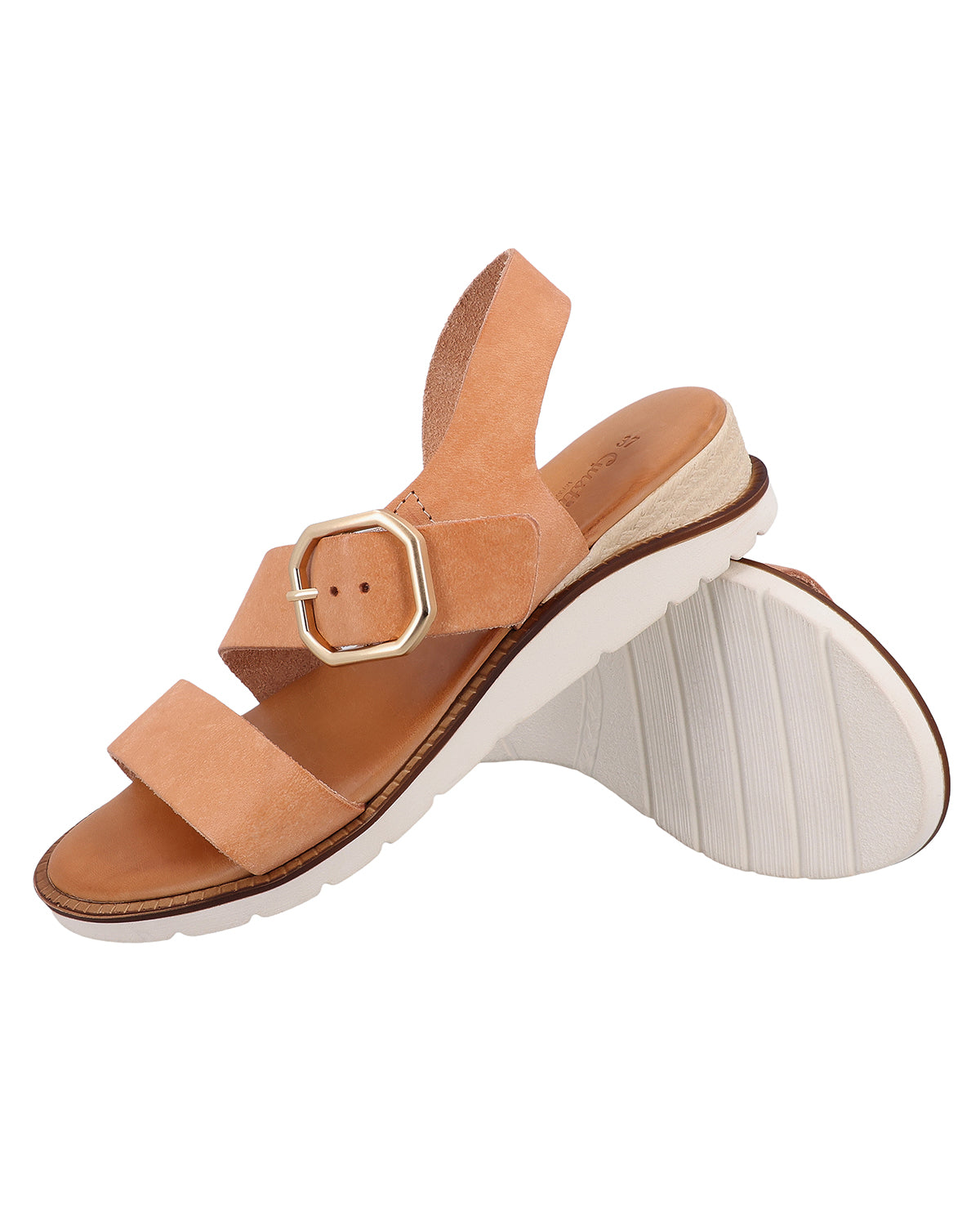 Unsere Damen-Sandale „Delia“ ist der ideale Begleiter für warme Tage und entspannte Stunden. Die hochwertigen beigen Lederriemen umschließen Deinen Fuß sanft, während die weiche Ledersohle für ein besonders angenehmes Tragegefühl sorgt. Ein besonderes Highlight ist der leicht erhöhte Absatz im Keilstil, der eine feminine Silhouette zaubert, ohne dabei auf den Komfort eines flachen Schuhs zu verzichten.