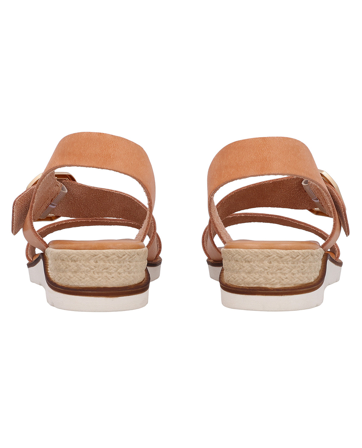 Leder-Sandale mit beigen Riemen und silberner Schnalle